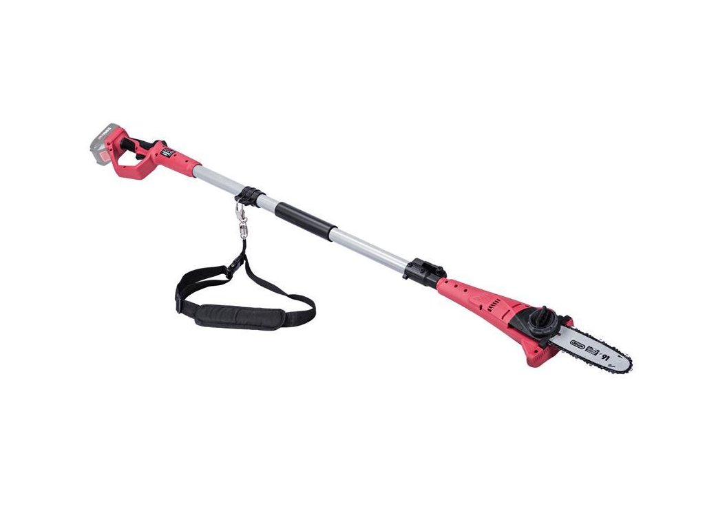 Môžete zostať stáť nohami pevne na zemi a namieriť pílový list, kam budete chcieť. Vďaka výsuvnej teleskopickej rukoväti s maximálnou dĺžkou až 270 cm a nastaviteľnému ramennému popruhu sa dostanete skutočne kamkoľvek. So svojím akumulátorovým pohonom a nastaviteľným uhlom rezania pri pílovom liste vám táto vyvetvovacia píla ponúka naozaj maximálnu flexibilitu. Keďže váži aj vrátane akumulátora 3,3 kg, môžete ju používať aj dlhšiu dobu v kuse. Vodiaca lišta uľahčuje manipuláciu a píla je vybavená ukazovateľom hladiny oleja v nádržke a indikátorom stavu nabitia akumulátora. Otáčky reťaze dosahujú 5 m/s a hrúbka lišty je 1,1 mm. Praktický ON/OFF vypínač je vybavený poistným tlačidlom proti nechcenému zapnutiu. Pogumovaná rukoväť prispeje k lepšej manipulácii. Pred prácou Vám odporúčame prečítať si návod na použitie, ktorý obsahuje obsiahly popis produktu a takisto aj bezpečnostné pokyny.