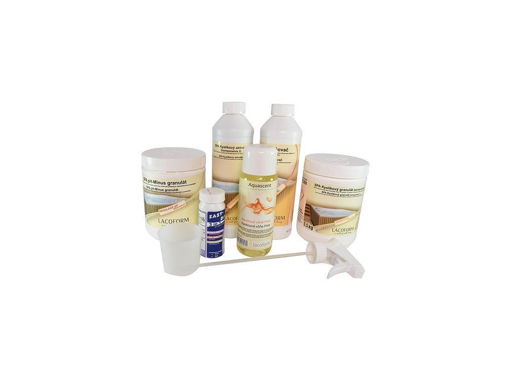 Sada obsahuje: Aktivní kyslík - granulát 0,5 kg Kyslíkový aktivátor 0,5 l Odpeňovač 0,5 l pH mínus granulát 0,75 kg aroma do vody 250 ml testovacie prúžky návod na úpravu vodyDodatočné parametre