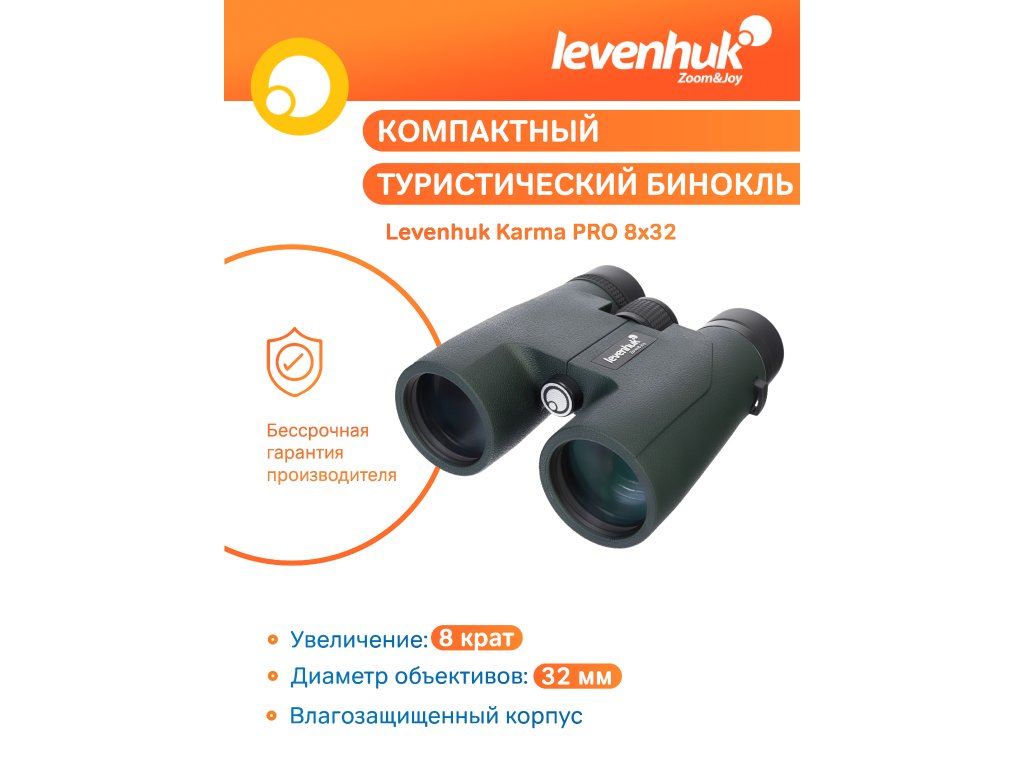 Značkové ďalekohľady Levenhuk Karma PRO 8x32 je kompletne spoľahlivý optický prístroj, ktorý efektne poslúži pri turistických aktivitách, menších prechádzkach či love. Jeho výhodou sú kompaktné rozmery, vďaka ktorým je možné ho pohodlne nosiť v taške. Obraz, ktorý prináša je živý a kontrastný, a preto jeho používatelia nebudú sklamaní.
