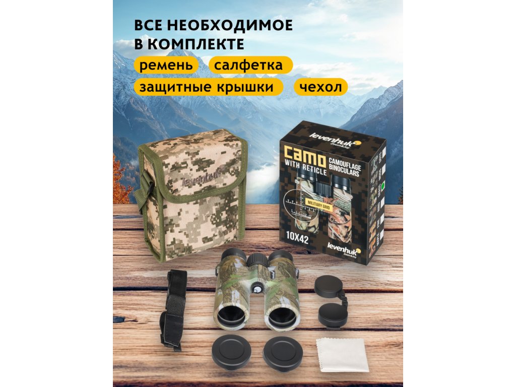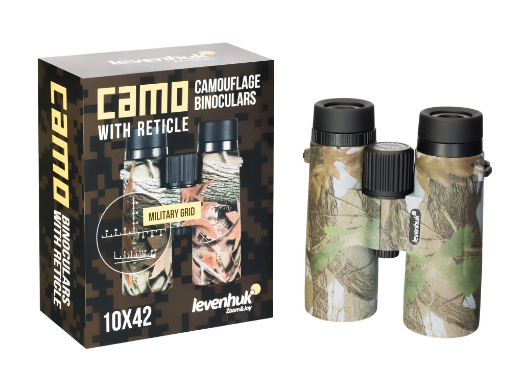 Turistický ďalekohľad Levenhuk Camo Grass 10x42 so zameriavačom je vhodný pre rybárov, poľovníkov, turistov a všetkých priaznivcov aktívneho životného štýlu. Binokulárny ďalekohľad obsahuje všetko, čo pri svojom pozorovaní budete potrebovať. Disponuje výkonným 10-násobný zväčšením, klasickými 42 mm šošovkami, vodotesnosťou a vysoko odolným telom v camo prevedení. Okrem vyššie spomenutého má jeden z okulárov rastrový zameriavací kríž a mierku na meranie vzdialenosti. Vďaka nej budete môcť vypočítať vzdialenosť k cieľu, určiť jeho výšku a zmerať horizontálne a uhol námeru. Poľovnícky ďalekohľad je skvelá voľba na lov.