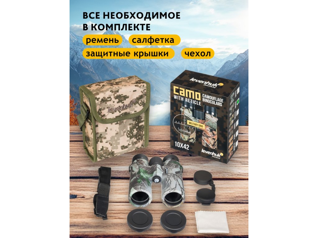Turistický, binokulárny ďalekohľad so zameriavačom Levenhuk Camo Moss 10x42