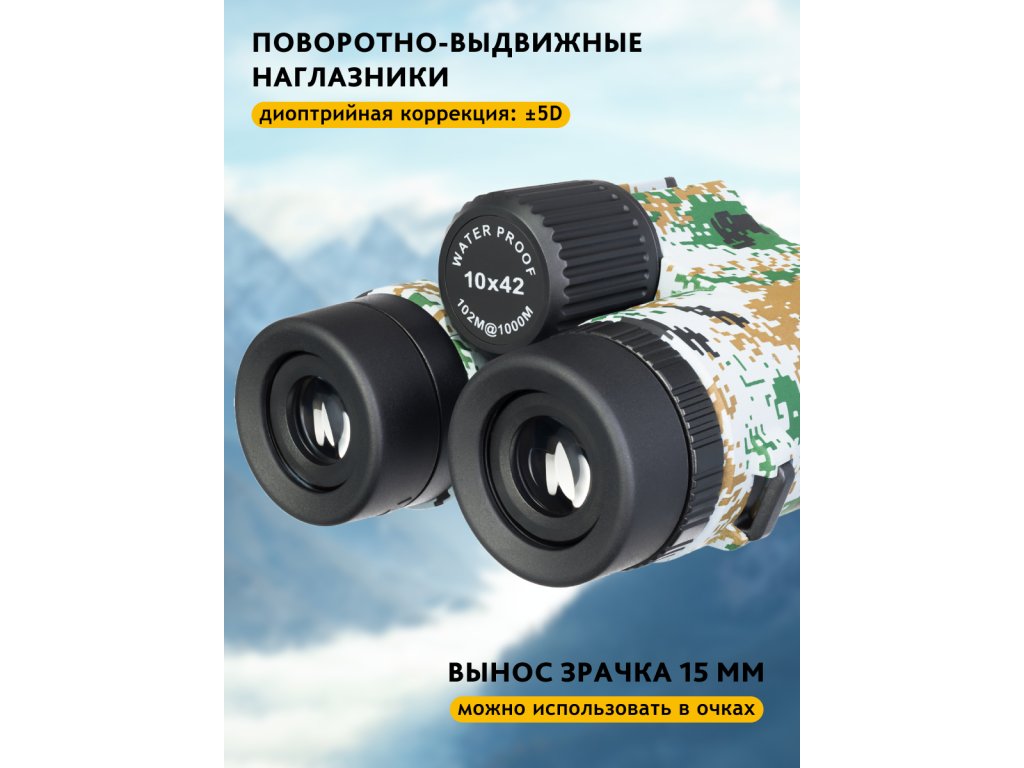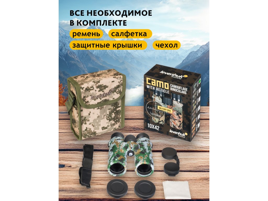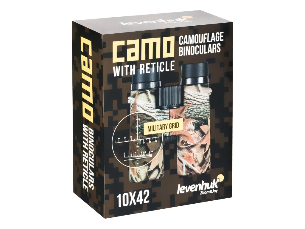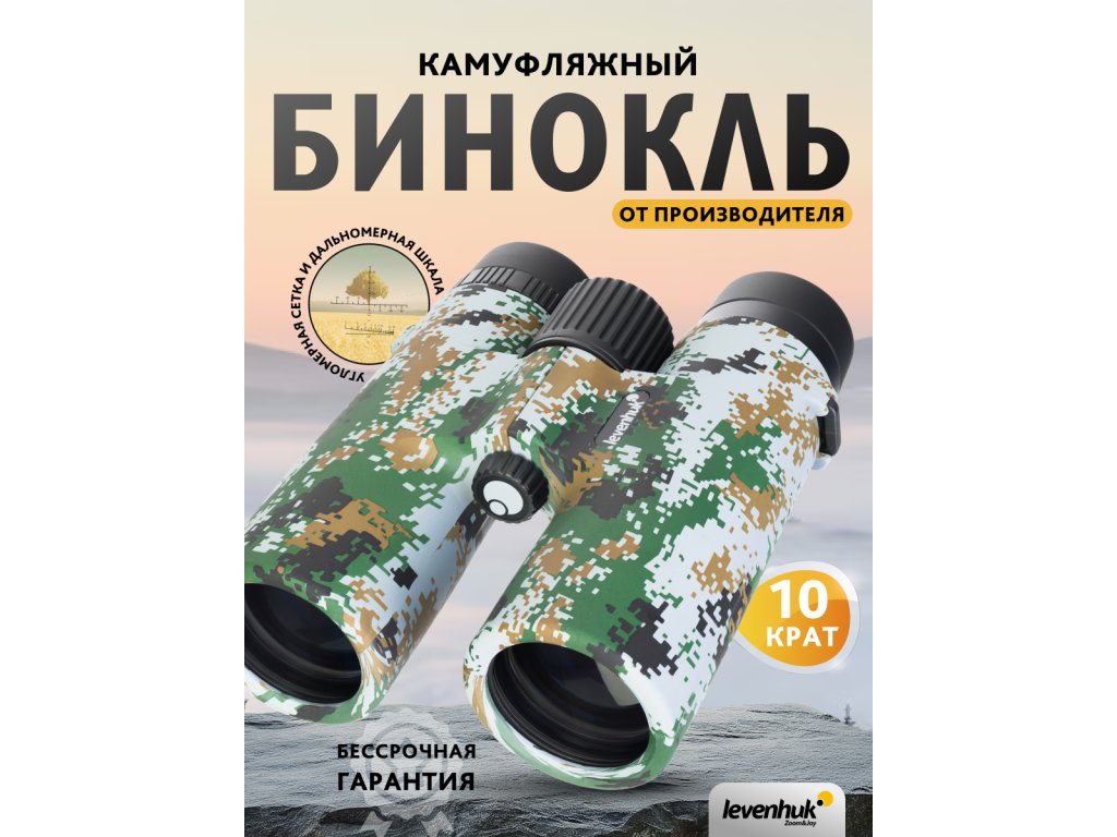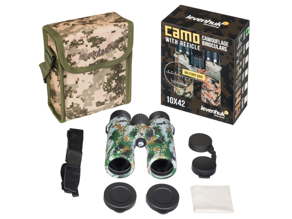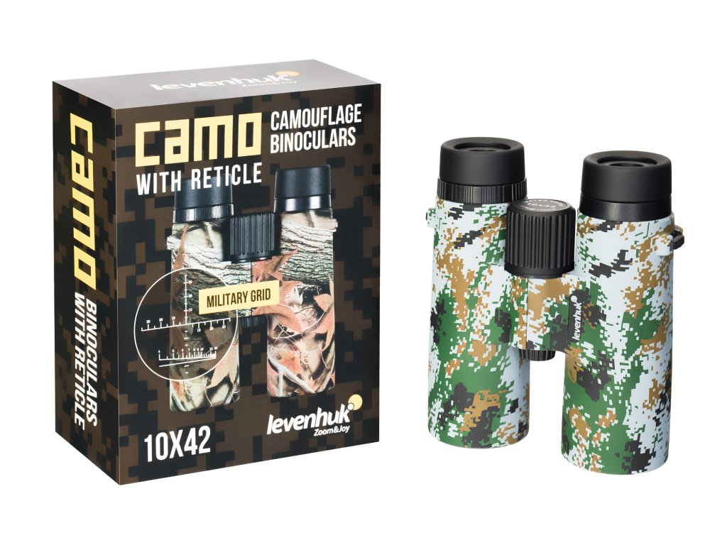 Turistický ďalekohľad Levenhuk Camo Dots 10x42 so zameriavačom je vhodný pre rybárov, poľovníkov, turistov a všetkých priaznivcov aktívneho životného štýlu. Binokulárny ďalekohľad obsahuje všetko, čo pri svojom pozorovaní budete potrebovať. Disponuje výkonným 10-násobný zväčšením, klasickými 42 mm šošovkami, vodotesnosťou a vysoko odolným telom v camo prevedení. Okrem vyššie spomenutého má jeden z okulárov rastrový zameriavací kríž a mierku na meranie vzdialenosti. Vďaka nej budete môcť vypočítať vzdialenosť k cieľu, určiť jeho výšku a zmerať horizontálne a uhol námeru. Poľovnícky ďalekohľad je skvelá voľba na lov.