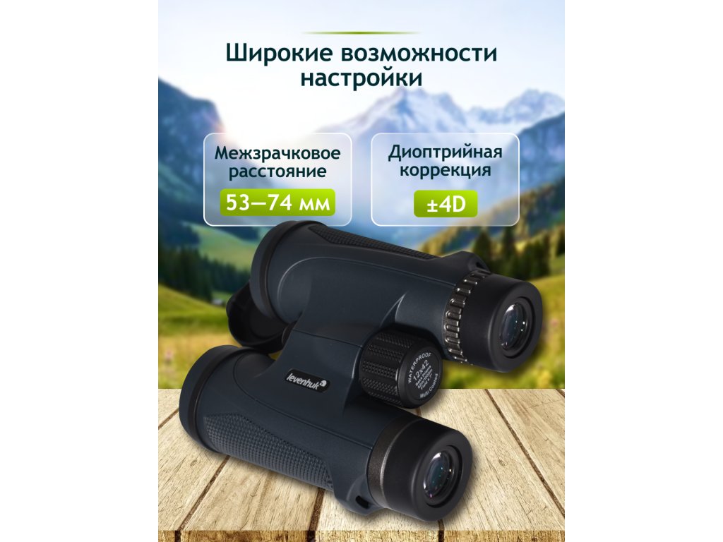 For explorers who brave the elements without retreating, they are a reliable companion against mud, dust, sand, and driving rain or snow. The binoculars are sealed to the IP67 standard, making them resistant to heavy rain or snowfall and even brief immersion in water up to one meter deep without affecting their proper function. The nitrogen-filled design prevents internal fogging, ensuring reliable performance and clear views in all environments. Enjoy a personalized and comfortable viewing experience with the Levenhuk New Karma PLUS 12x42 binoculars. Adjustable interpupillary distance and ±4D diopter correction ensure optimal comfort and clarity for every user.
