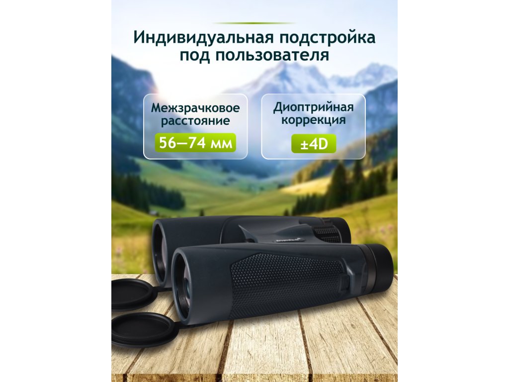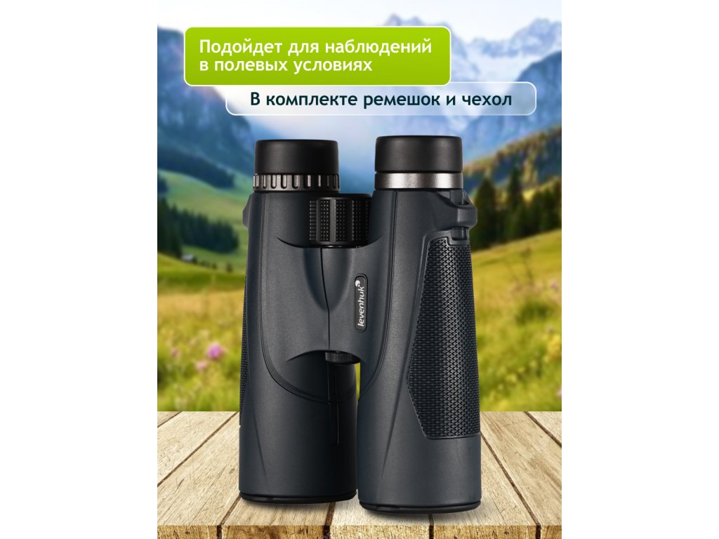 The Levenhuk New Karma PLUS 12x50 model offers reliable performance in any environment. Its IP67 rating protects against dust, dirt, water, and snow. Short, shallow submersion in water won’t compromise its functionality. A secure grip is essential, especially outdoors. The Levenhuk New Karma PLUS 12x50’s high-quality ABS plastic body, enhanced with a rubberized coating, provides exceptional grip, even in humid conditions, ensuring your binoculars stay safely in your hands. For added security and convenience, a strap is also included.
