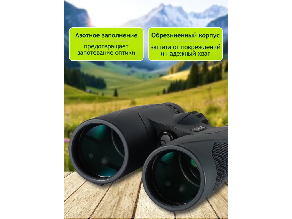 Experience superior long-range visibility with the Levenhuk New Karma PLUS 12x50 binoculars. Built for tough conditions, these powerful and reliable binoculars perform flawlessly, even in adverse weather. This model is perfect for hunters, anglers, hikers, campers, security personnel, and search and rescue teams. High-aperture, fully multi-coated optics guarantee bright, sharp, and detailed images, even in low-light conditions, allowing you to capture every crucial detail. To prevent internal fogging, the binoculars’ housing is filled with nitrogen.