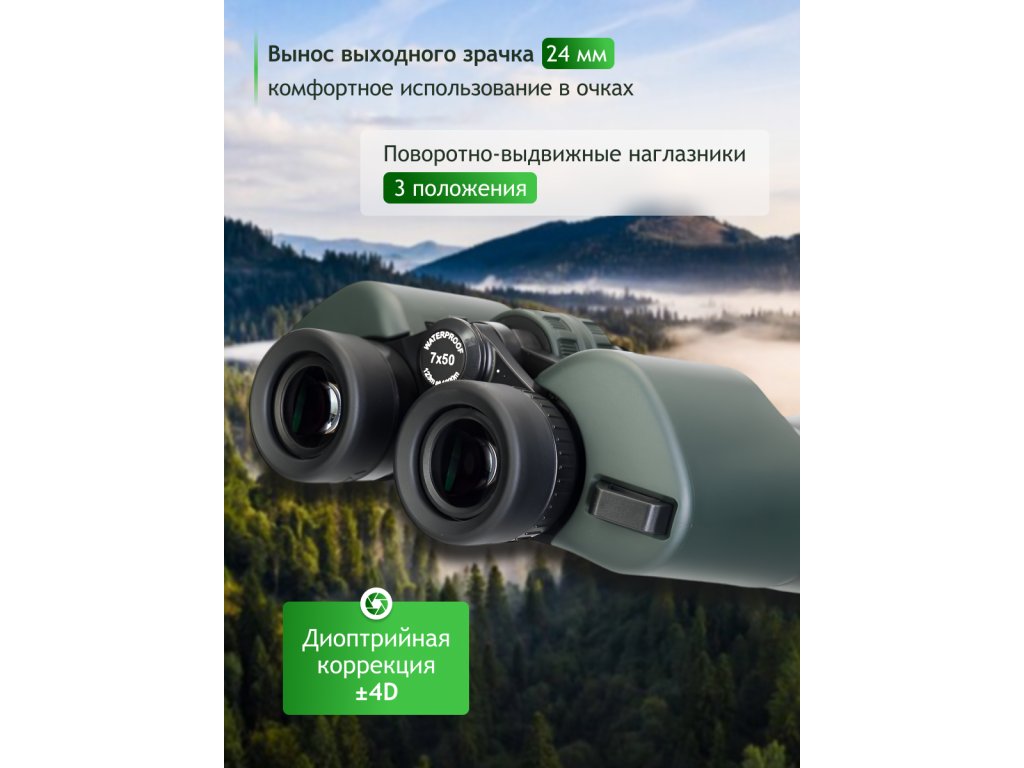 Používatelia s nedokonalým zrakom ocenia dioptrickú korekciu (±4D), ktorá umožňuje prispôsobiť zariadenie ich individuálnym potrebám. Veľký očný reliéf umožňuje pohodlné pozorovanie aj s nasadenými okuliarmi. Mechanizmus click-stop zjednodušuje nastavenie výklopných očnic do optimálnej polohy pre pozorovanie. Pre osobné pohodlie je možné nastaviť aj medzipupilárnu vzdialenosť a zaostrenie sa dosiahne jednoduchým otáčaním centrálneho kolieska. Ďalekohľad sa ukazuje ako spoľahlivý spoločník aj na náročnej túre. Vďaka plnému krytiu IP67 odolá dažďu, nečistotám, prachu a krátkodobému ponoreniu do vody. Nárazuvzdorné telo je vyrobené z duralu, čo je zliatina hliníka a medi, ktorá poskytuje bezpečný a protišmykový úchop. Je naplnené dusíkom, aby sa zabránilo vnútornému zahmlievaniu počas teplotných zmien. Prístroj sa dodáva s príslušenstvom pre pohodlné používanie a krytky objektívov sú už pripevnené k telu.