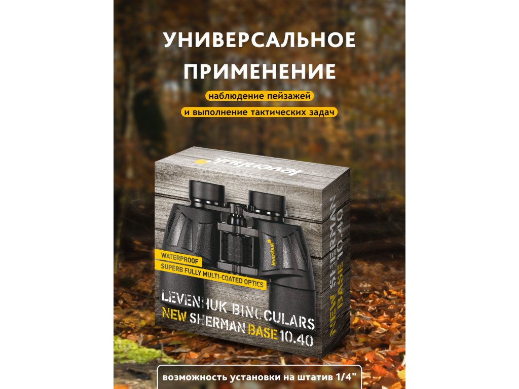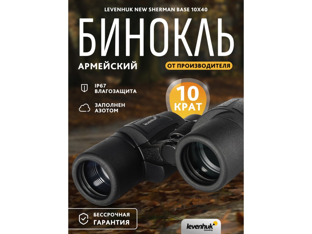 Levenhuk New Sherman BASE 10x40 binoculars with Porro prisms are an excellent choice for those who enjoy observing nature. This optical device fully demonstrates its capabilities in hunting, hiking, security operations, and tactical surveillance. The binoculars provide 10x magnification, with a 6.3° real field of view (110m/1000m).