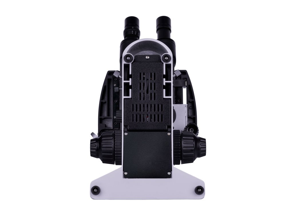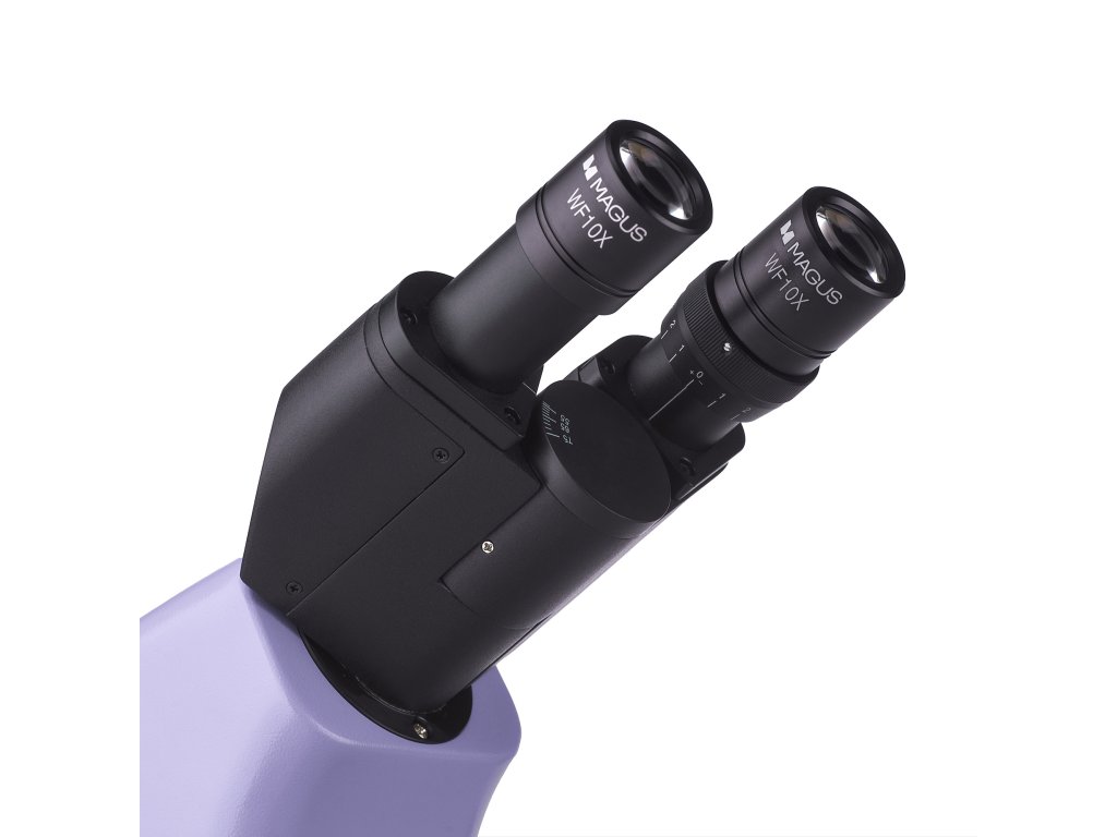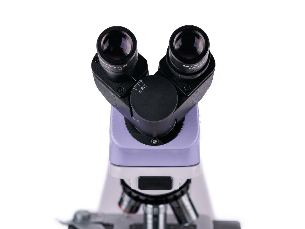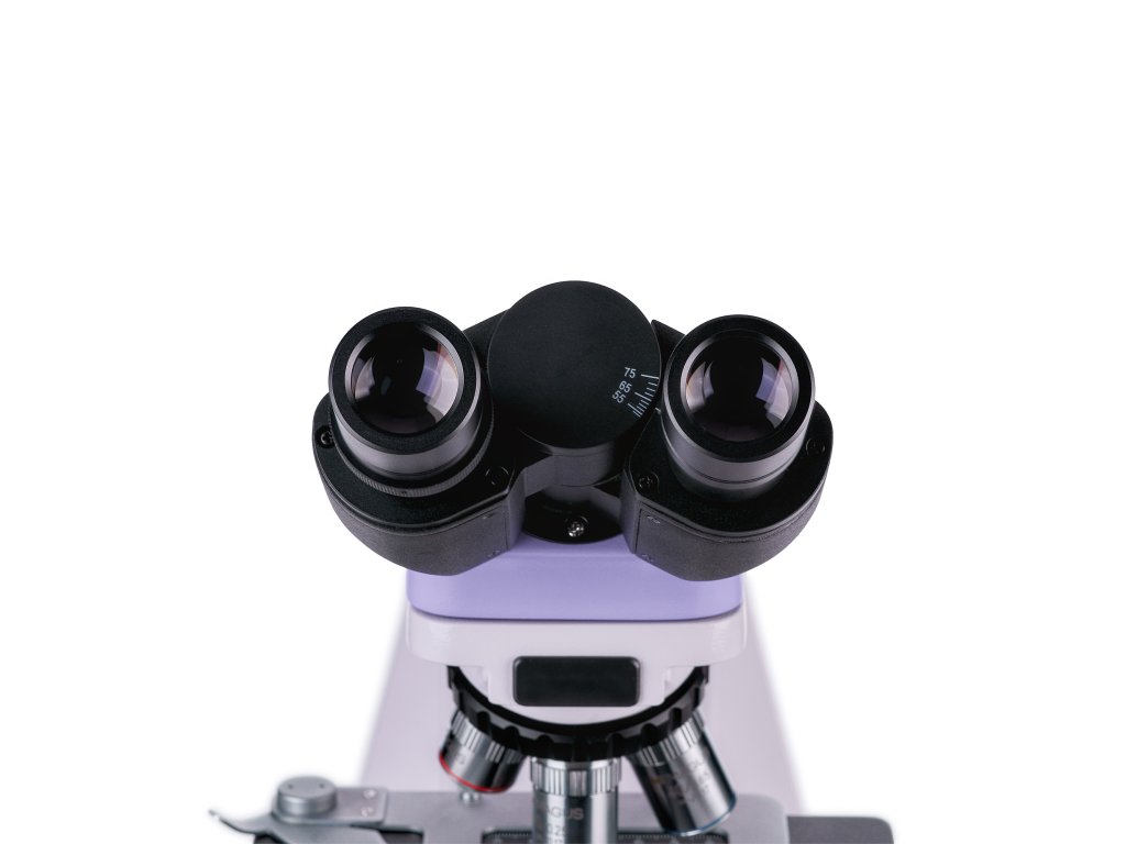 Pozorovacie tubusy sa otáčajú o 360°, vďaka čomu môžete nastaviť okuláre podľa vašej výšky. Na ľavom tubuse sa nachádza krúžok, ktorým nastavíte dioptrie. Do tohto tubusu sa dá inštalovať digitálny fotoaparát, ktorý nie je súčasťou balenia. Revolverový nosič disponuje 5 slotmi a je orientovaný smerom dovnútra. Okrem objektívov, ktoré sú súčasťou balenia, tak môžete pripojiť aj ďalší objektív pre dosiahnutie ešte väčšieho zväčšenia v celom možnom rozsahu zväčšenia. Biologický mikroskop Magus Bio 230BL ponúka základné zväčšenie, ktoré sa pohybuje od 40 do 1000x, kedy hornú hranicu môžete zvýšiť až na 1500x, 1600x alebo 2000x, ak pridáte ďalšie okuláre. Optika mikroskopu je korigovaná na nekonečno.