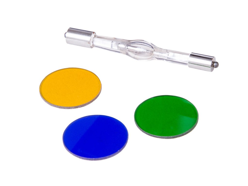 Fluorescenčná jednotka: | Filtre "G", "B", "BV", "V", "U"; ortuťová výbojka (100W) s externým napájaním; radiačný štít |