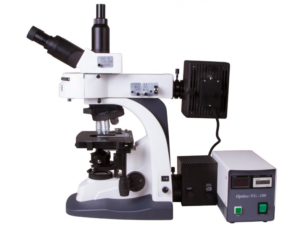 Profesionálny fluorescenčný mikroskop. Polorovinná apochromatická optika s korekciou na nekonečno. Zväčšenie: 40-400x.