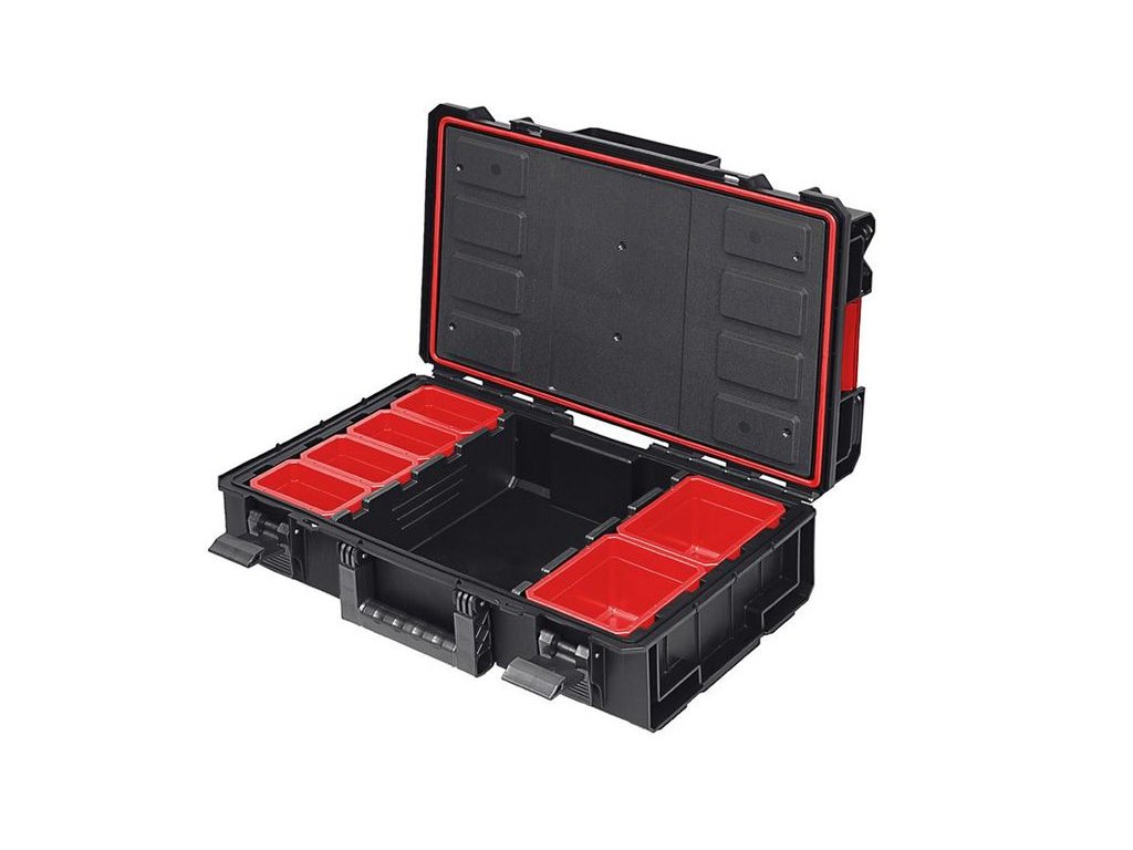 QBRICK ONE 200 je všestranný modulárny box na náradie, ktorý kombinuje vlastnosti stredne veľkého kontajnera s organizérom. S nastaviteľnými priehradkami a 6 odnímateľnými nádobami si môže každý užívateľ vytvoriť optimálnu kombináciu pre svoje potreby. Každá skrinka na náradie je vybavená flexibilným tesnením, ktoré poskytuje úplnú ochranu proti prachu a vode. Technik je najpokročilejšia verzia Qbrick, vybavená inovatívnymi hliníkovými montážnymi lištami, ktoré umožňujú použitie klasických tesárskych skrutkových svoriek. Vďaka nim možno boxy Qbrick System Technik využiť ako pracovné stoly, potrebné na presné orezávanie, lepenie či držanie. Zosilnené veko a konštrukcia tela zaručuje vysoké zaťaženie (50 kg) a odoláva tlaku až 120 kg, čo dáva možnosť vytvorenia pohodlných pracovných plošín. Vhodný pre každého majstra alebo kutila na široký druh práce.