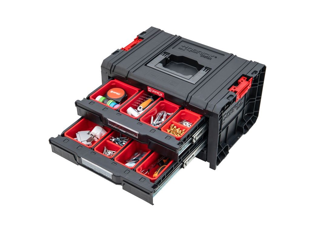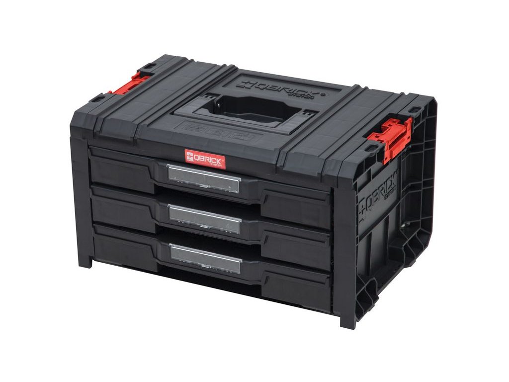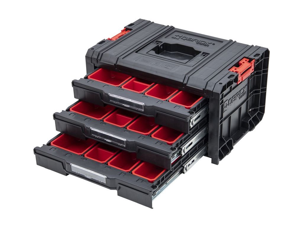 Zásuvkový organizér QBRICK s troma praktickými zásuvkami Vám zjednoduší Vašu prácu v dielni. Zásuvkový organizér na diely má tri praktické zásuvky určené na šrubky, klince a iný drobný materiál. Box zásuvkový si samozrejme môžete presúvať kam potrebujete vďaka silnému držadlu. Hmotnosť: 6, 75 kg.