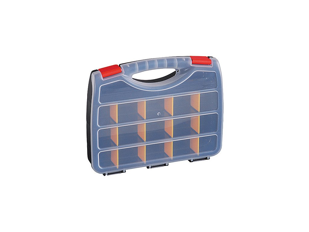 Ak musíte profesionálne pracovať s náradím, materiálom a drobnými dielmi, je nevyhnutné, aby všetko vždy našlo svoje miesto. Ponúkame vám kufríkový organizér HL30122 s priehľadným vekom a 15 praktickými priehradkami, ktorý vám to pomôže roztriediť. Veľká rukoväť na veku vám umožní všetko ľahko a pohodlne prenášať. Kufrík má rozmery 31.5x25.5x5.5 cm s maximálnou nosnosťou približne 7 kg.