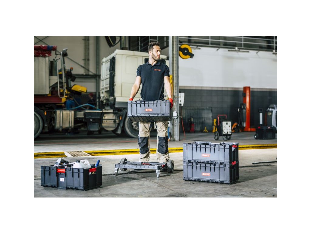 Tento funkčný box je neoddeliteľnou súčasťou zostavy Qbrick. Veľká kapacita a otvorená konštrukcia umožňuje prepravovať predmety s neštandardnými rozmermi alebo tie, ktoré vyžadujú priamy prístup bez nutnosti otvárania veka. Spájací systém umožňuje vytvárať viacprvkové súpravy s akoukoľvek skrinkou na náradie Qbrick System One. Po kliknutí na odkaz si môžete sami nakonfigurovať rôzne modely QBRICK, tento nástroj Vám sprehľadní objednávanie medzi rôznymi boxami, ktorý finálne uvidíte na detailnejšom obrázku s popisom kompletnej váhy.