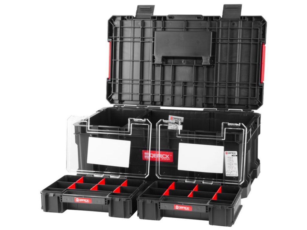 Je vyrobený z veľmi pevného polykarbonátu s pohodlnou rukoväťou a vďaka systému Qbrick TWO môžete kombinovať vlastnosti iných kufrov na náradie, vozíkov a úložných systémov. Praktický multiorganizér odolný voči vode a prachu je usporiadaný pomocou nastaviteľných priehradiek, ktoré sa používajú v kombinácii s inými boxmi (systém TWO) - napr. na: náradie, príslušenstvo, skrutky atď.