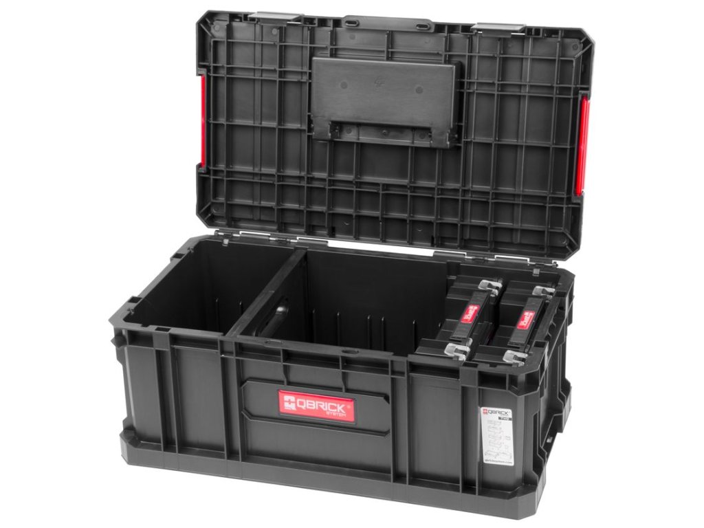 QBRICK SYSTEM TWO TOOLBOX PLUS je modulárny, odolný box na náradie s polyamidovými západkami a pevnou rukoväťou s objemom 26 litrov. Veľký objem a dve nastaviteľné priehradky poskytujú pohodlné uloženie rôzneho náradia. Box na náradie je vyrobený z kvalitných materiálov a umožňuje dlhodobé používanie. Skriňa na náradie bola vytvorená na profesionálnej úrovni a možno ju dokonale kombinovať s ďalším vybavením zo systému QBRiCK TWO, čím sa dosiahnu neobmedzené variácie.