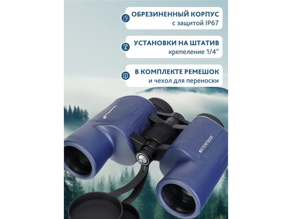 The binoculars feature BaK-4 optical glass, Porro prism system, and eyepieces with a 4-element/3-group design. Fully multi-coated lenses and prisms significantly enhance image clarity in dim lighting.