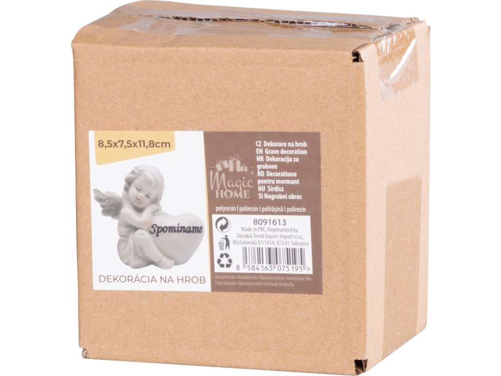 Dekorácia MagicHome, Anjel so srdcom, polyresin, na hrob, 11x7,9x10,1 cm