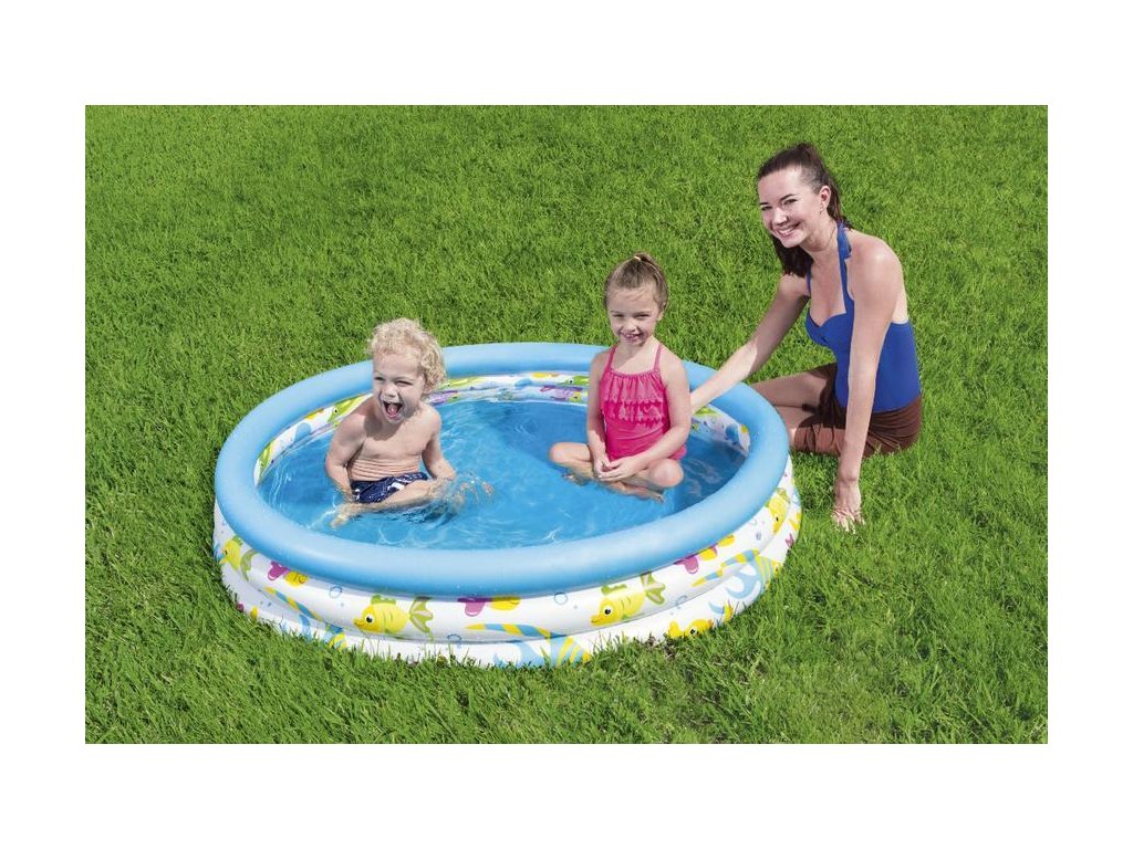 Špička medzi detskými bazénmi, ako stvorený pre detské huncútstva vo vode - nafukovací bazén Bestway® Coral Kids Pool ponúka veľa zábavy pre deti, ktoré majú 2 a viac rokov a zároveň milujú špliechanie v bazéne počas horúcich letných dní. Tri rovnaké nafukovacie prstence s pestrofarebnou grafickou potlačou znázorňujúcou podmorský život, vytvárajú dokonalý bazén pre malých nezbedníkov a ich kamarátov. Plusom je aj materiál odolný voči prepichnutiu, ktorý zvládne dlhé roky detských vodných hier.