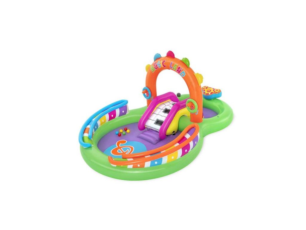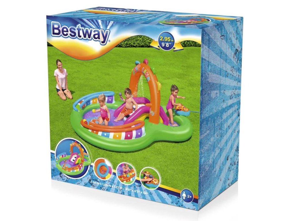 Detské nafukovacie hracie centrum Bestway® 52331 obsahuje priestrannú šmykľavku, veľký a malý bazénik a nafukovací oblúk. Hracie centrum pre deti je vhodné od 2 rokov. Deti sa v bazéniku zabavia šiestimi loptičkami na hranie alebo hrou s hádzaním kruhu a veľa iného. S detským nafukovacím centrom si užijú slnečné dni plné zábavy.
