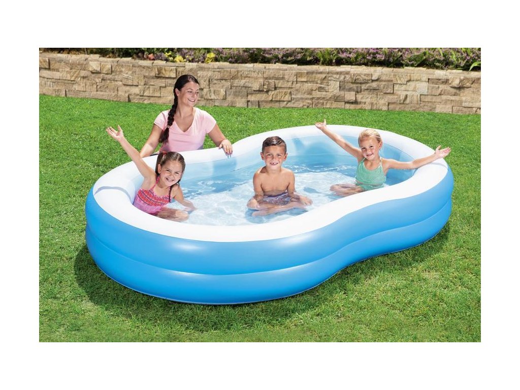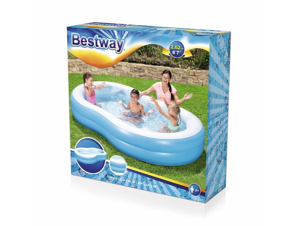 Modrý rodinný bazén Bestway® 54117, The Big Lagoon Family s objemom 544 litrov je ideálnou voľbou na záhradu alebo chatu. Detský bazén je navrhnutý pre deti od 3 rokov, ale určite sa v ňom príjemne schladia aj dospelí. Bazén pre deti je vyrobený z kvalitného vinylu, vďaka čomu je vysoko odolný a dosahuje dlhú životnosť. Bazén Bestway® 54117, The Big Lagoon Family má dve samostatne nafukovacie komory s bezpečnostnými ventilmi. Bazén s rozmermi 2,62 m x 1,55 m x 46 cm s extra širokými bočnými stenami je ideálny pre mladšie rodiny, ktoré si chcú počas horúcich letných dni užiť veľa zábavy. S ľahko použiteľným vypúšťacím ventilom je zloženie bazéna ľahká záležitosť.