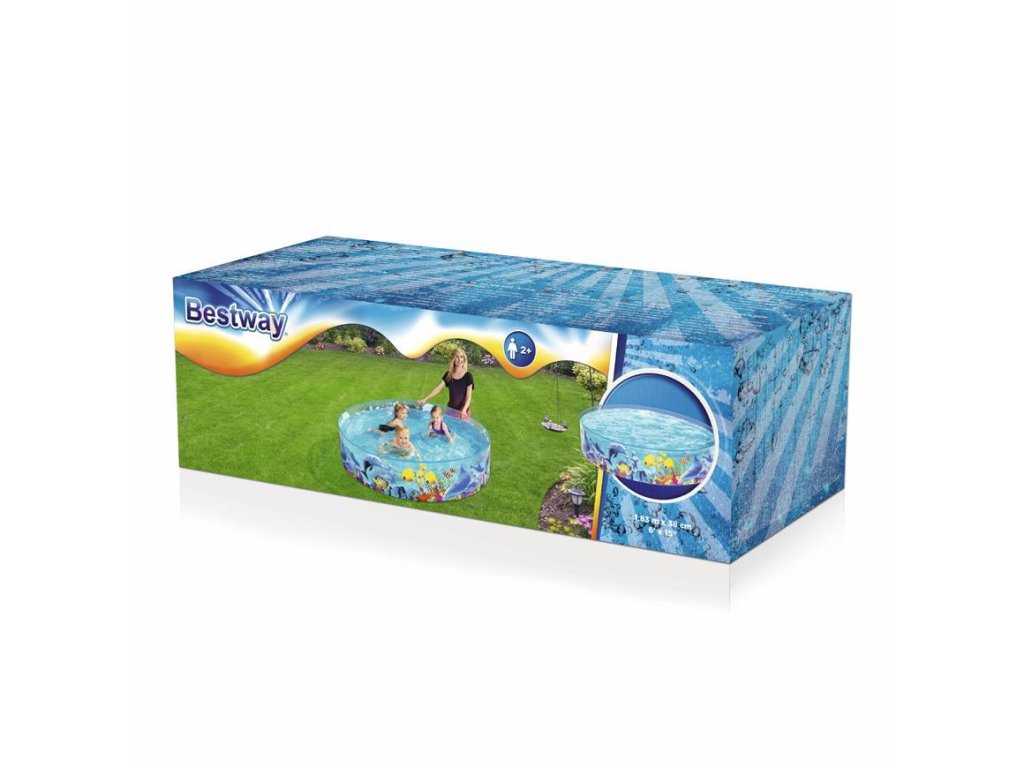 Detský bazén Bestway® 55030 Fill 'N Fun Odyssey s PVC stenou a s rozmermi 1,83 cm x 38 cm je ideálnou voľbou na každý dvor alebo záhradu, pre 2 a viac ročné deti. Bazén pre deti s PVC stenou je zhotovený z kvalitných a odolných materiálov. Vonkajšia stena je vyzdobené farebnou scénou-podmorský svet. Bočná PVC stena sa pripája k pevnému vinylovému dnu. Hry vo vode počas teplých, letných mesiacov neboli nikdy zábavnejšie ako s bazénom Fill-n-Fun od spoločnosti Bestway®.