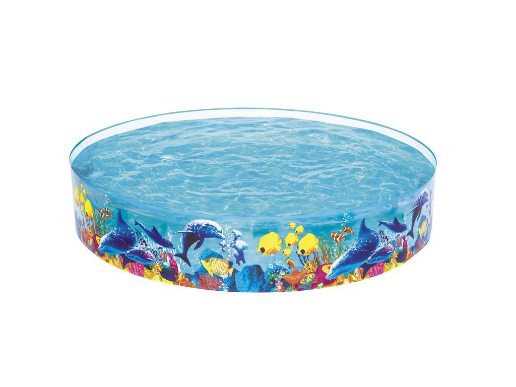 Detský bazén Bestway® 55031 Fill 'N Fun Odyssey s PVC stenou a s rozmermi 2,44 cm x 46 cm je ideálnou voľbou na každý dvor alebo záhradu, pre 3 a viac ročné deti. Bazén pre deti s PVC stenou je zhotovený z kvalitných a odolných materiálov. Vonkajšia stena je vyzdobené farebnou scénou-podmorský svet. Bočná PVC stena sa pripája k pevnému vinylovému dnu. Hry vo vode počas teplých, letných mesiacov neboli nikdy zábavnejšie ako s bazénom Fill-n-Fun od spoločnosti Bestway®.