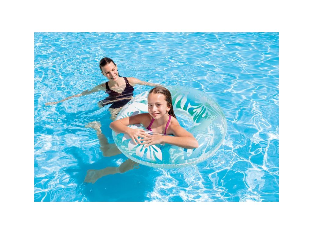 Kruh je vyrobený zkvalitného a priehľadného PVC materiálus farebným vzorom, ktorý zaujme na prvý pohľad. Vďakanízkej hmotnostiajednoduchej manipuláciije vhodný na použitie v bazéne, na kúpalisku aj pri mori.