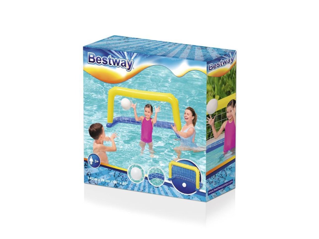 Prostredníctvom hernej sady Bestway® Water Pool Swimming sa deti sa môžu naučiť hrať vodné pólo ako profesionáli. Zažijú veľa srandy ak sa budú snažiť hodiť loptu do nylonovej siete proti svojmu súperovi. Nafukovacia bránka je určená na použitie vo vode. Je vyrobená z odolného materiálu a jej zostavenie je veľmi rýchle a jednoduché.