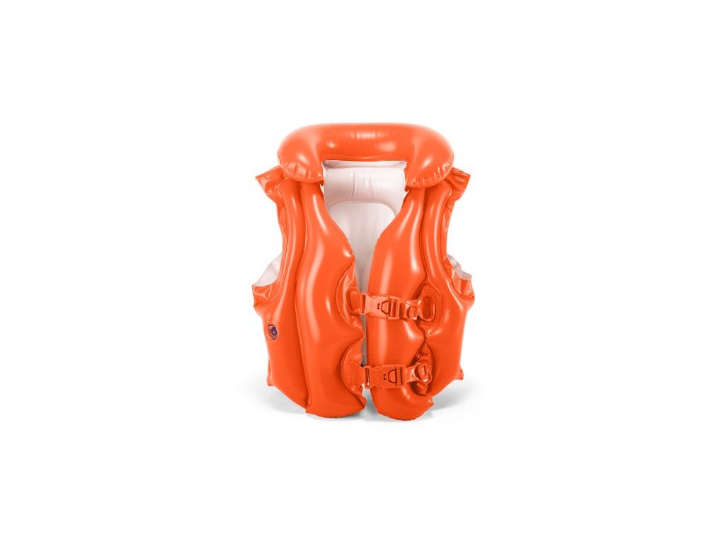 Detská nafukovacia vesta Intex® 58671EU Deluxe je ideálna plavecká pomôcka pre deti vo veku od 3 do 6 rokov. S rozmermi 50 × 47 cm poskytujebezpečnú oporupri prvých pokusoch o plávanie a zvyšuje istotu dieťaťa vo vode.