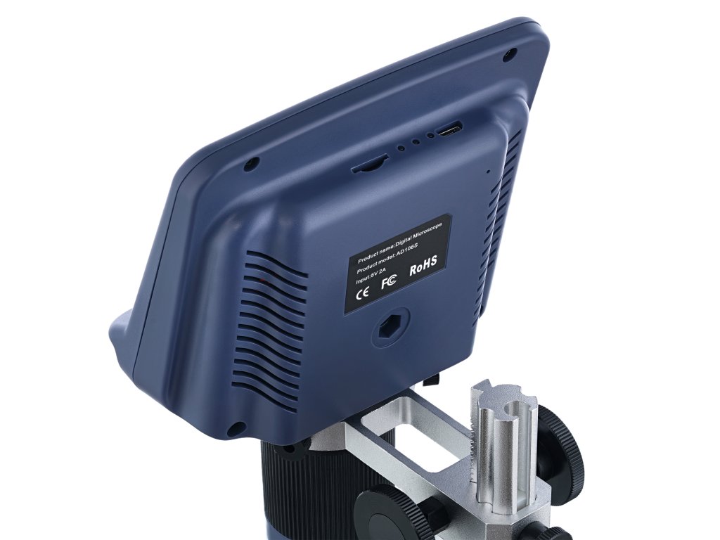 Všetky ovládacie prvky sa nachádzajú priamo pod LCD obrazovkou a niektoré sú dostupné aj na diaľkovom ovládaní. Diaľkové ovládanie je dvojakého typu, jedno káblové a druhé bezdrôtové. Káblové diaľkové ovládanie slúži na reguláciu osvetlenia a je umiestnené na napájacom kábli. Osvetľovací systém tvoria bodové LED svetlá na flexibilných držiakoch a zabudované osvetlenie zhora. Bezdrôtové diaľkové ovládanie slúži na nastavenie zväčšenia, zachytenie snímky či zaznamenanie videa.