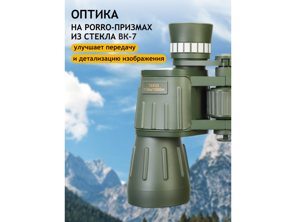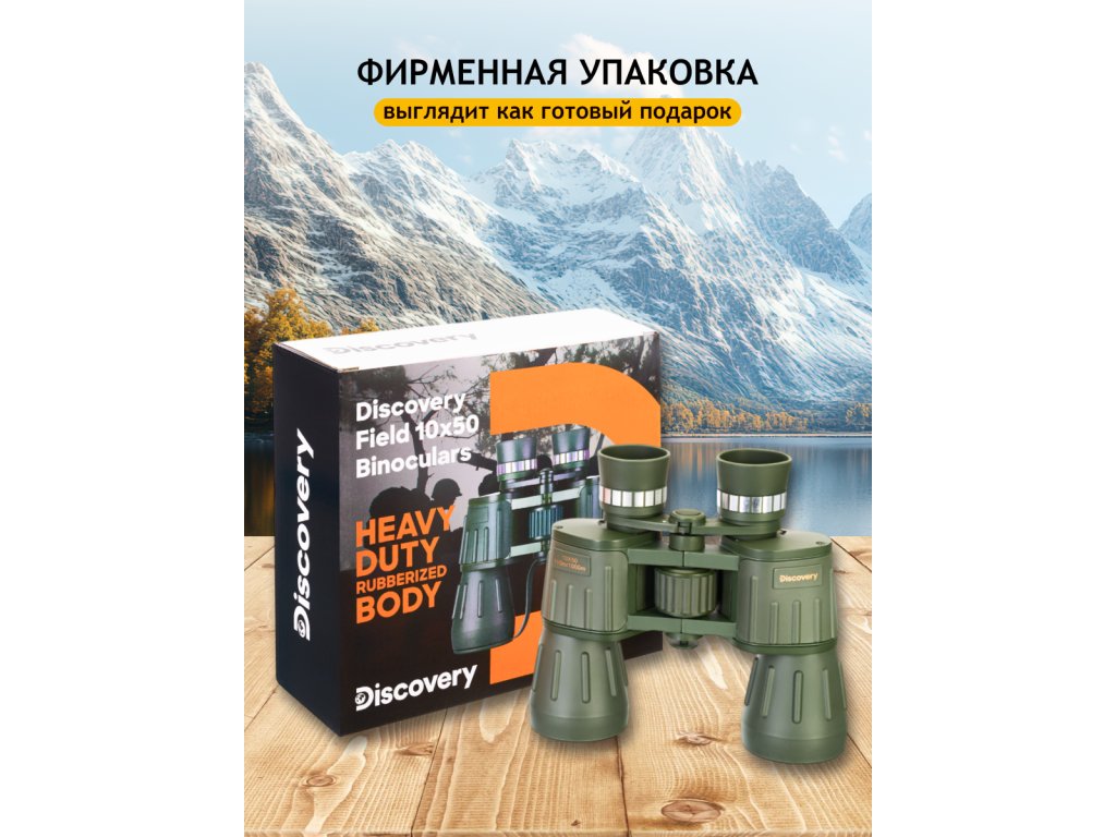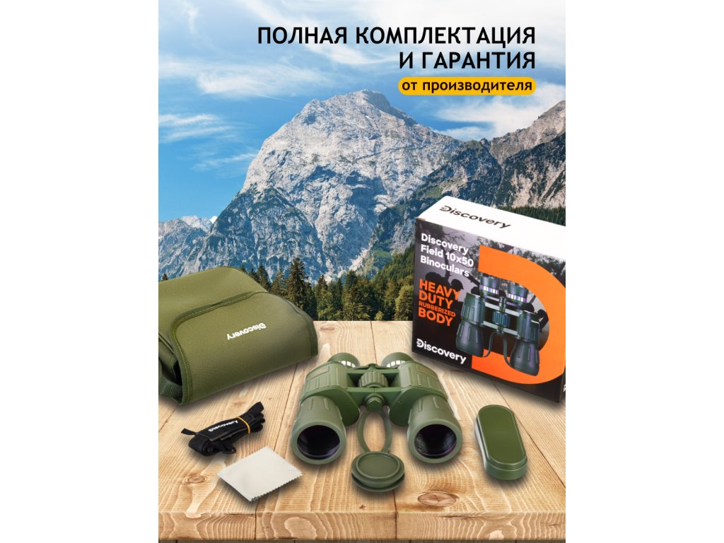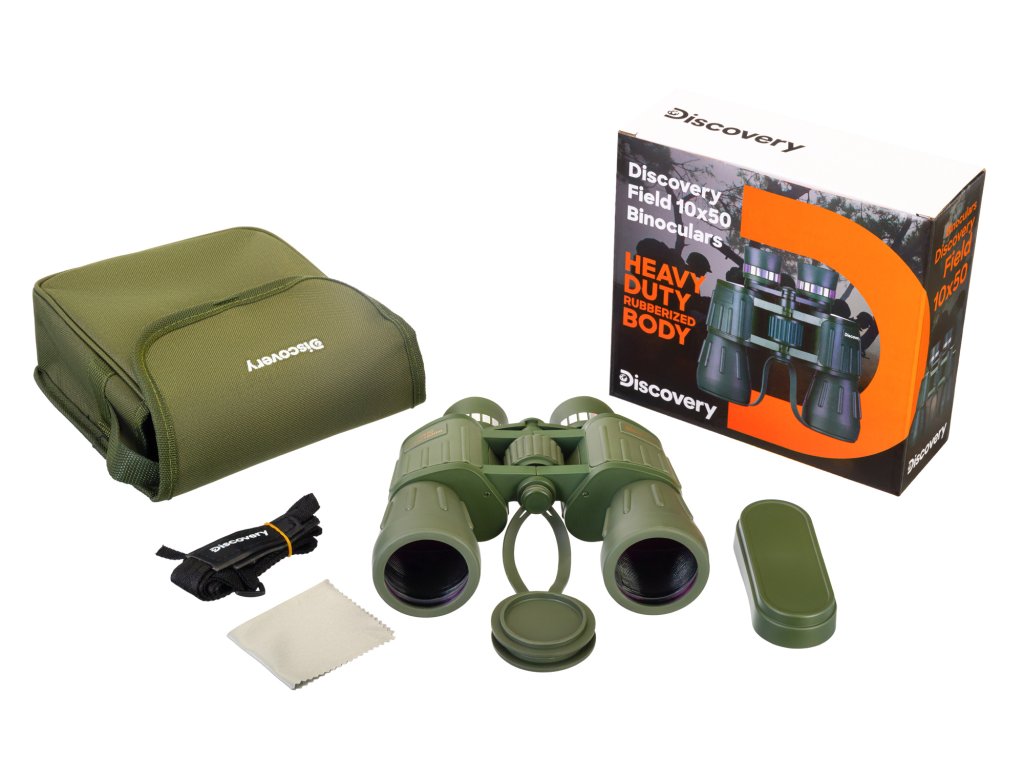 Discovery Field 10x50 je vodeodolný binokulár, ktorý je určený na pozorovanie v otvorenom teréne. Stáva sa tak z neho nevyhnutná výbava pre strážcov územia, pre lovcov, účastníkov expedičných alebo turistických výprav. Ďalekohľad má 50 mm optiku s vysokou apertúrou, s klasickou Porro schémou, ktorá zhromažďuje veľké množstvo svetla. Všetky optické šošovky sú na aktívnych plochách pokryté niekoľkými vrstvami antireflexnej povrchovej úpravy. Optika zo skla BK-7 poskytuje čistý a vysoko kontrastný obraz aj za denného svetla aj za súmraku.