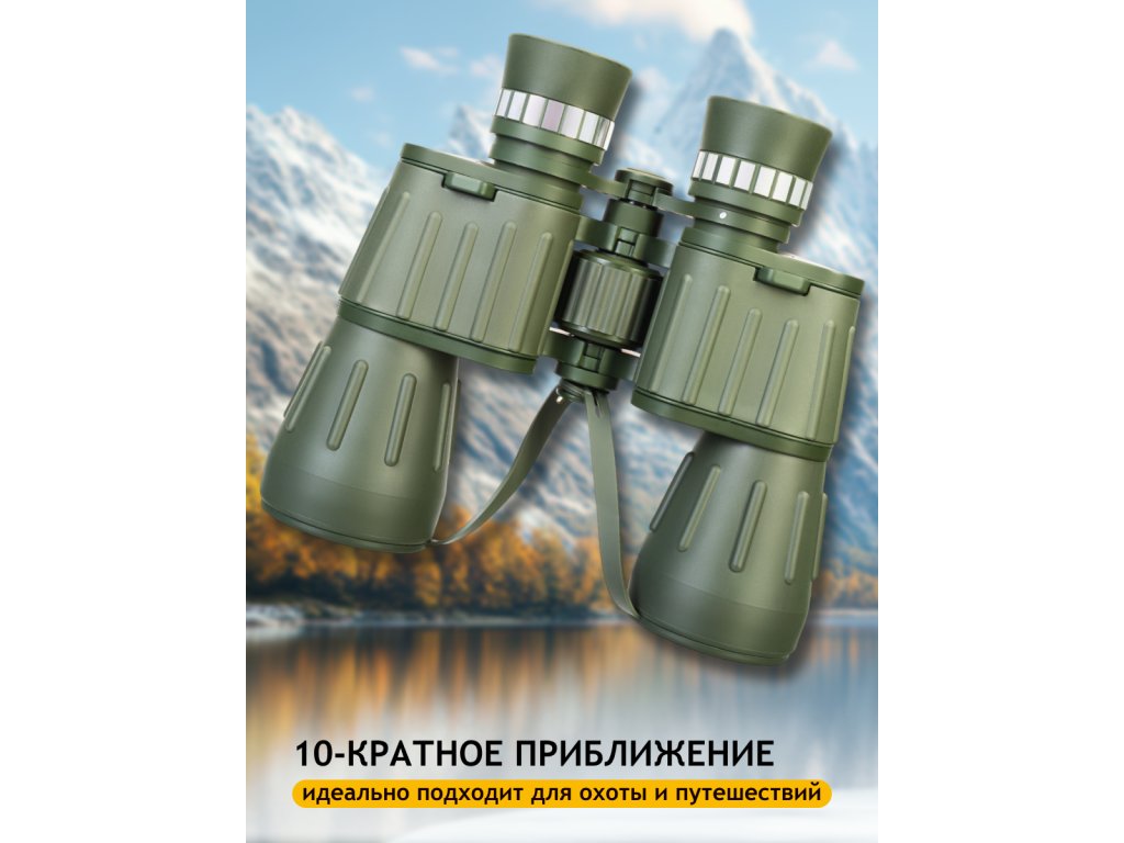 Odolný proti vode. Optické Porro hranoly. Zväčšenie: 10x. Priemer šošovky objektívu: 50 mm