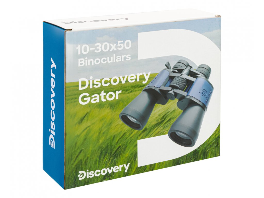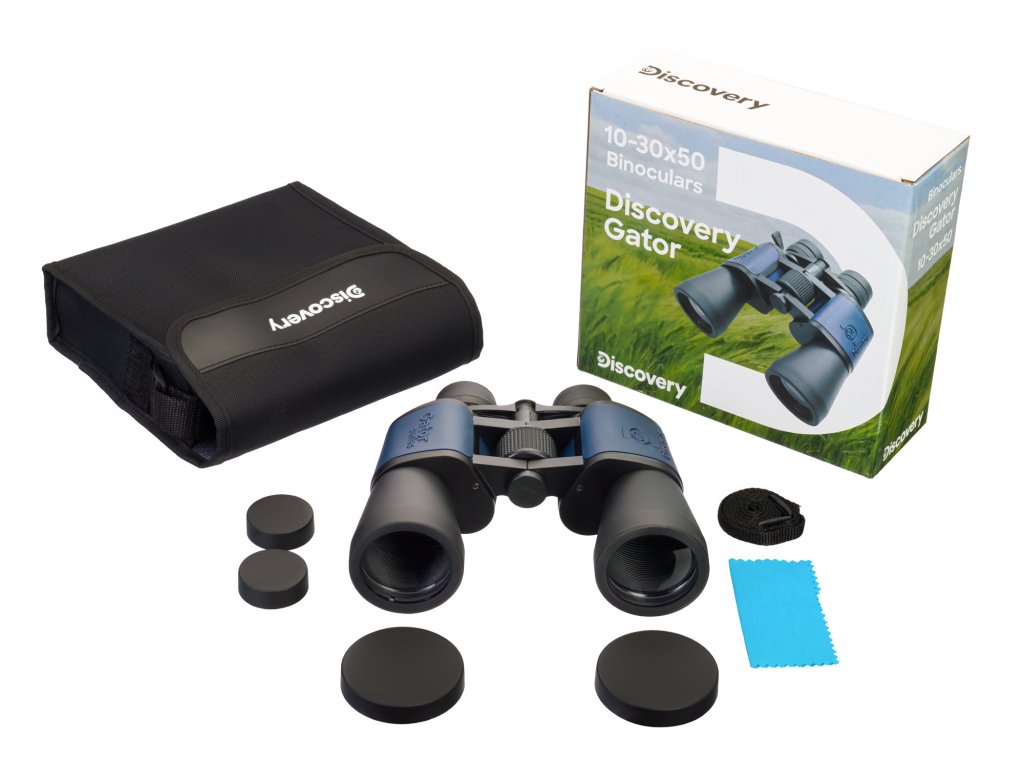 Binokulárny ďalekohľad Discovery Gator 10-30x50 disponuje rozsahom zväčšenia 10x až 30x, vďaka čomu sa z neho stáva viacúčelové zariadenie. Na jednej strane ide o klasický poľný binokulárny ďalekohľad na lov, rybárčenie a na strane druhej o výkonné optické zariadenie, ktorým môžete detailne pozorovať veľmi vzdialené objekty. Binokulár je multifunkčný a ľahký a je možné ho prepnúť zo všeobecného pozorovania na pozorovanie na veľké vzdialenosti a to jednoduchým pohybom pravej ruky (páčka zoomu na pravom okulári mení zväčšenie).