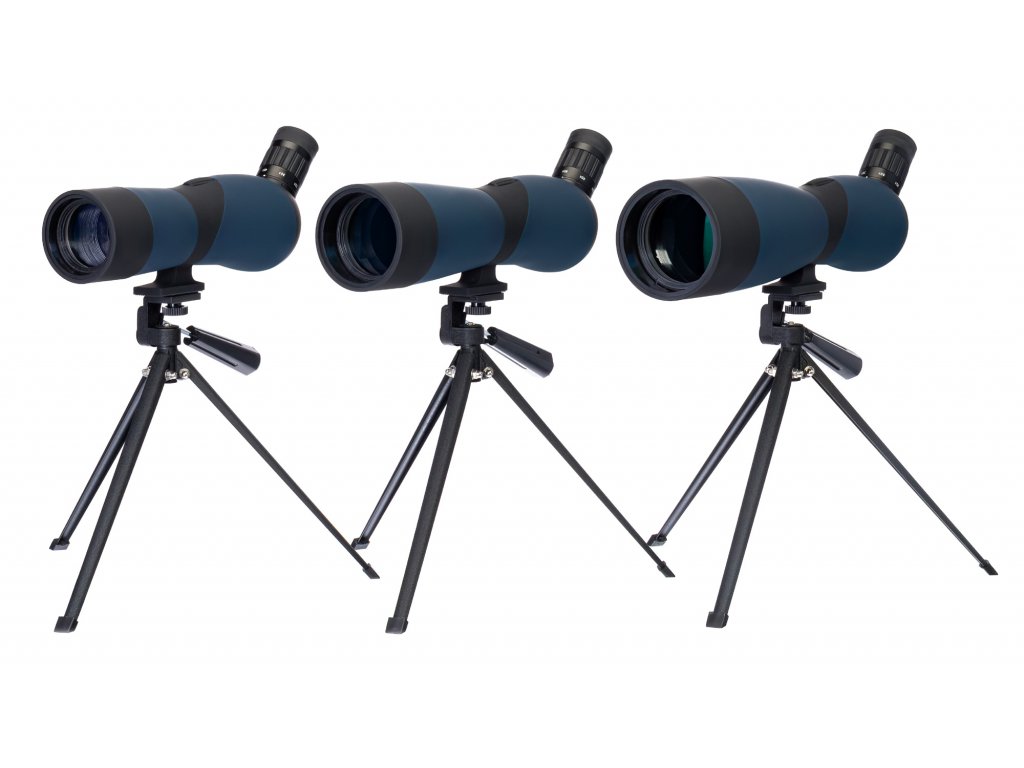 Šikmý okulár. Zväčšenie: 15–45x. Priemer šošovky objektívu: 50 mm.