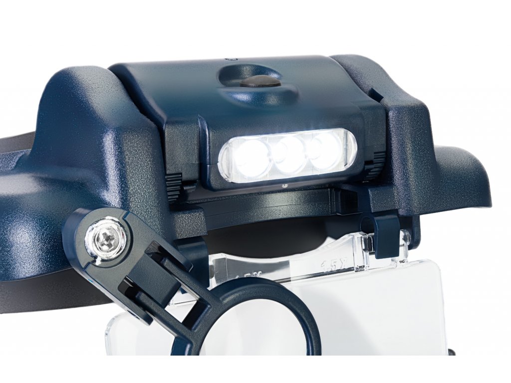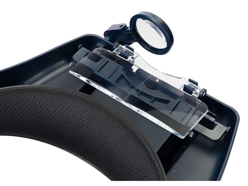 Na náhlavnú lupu je možné nasadiť súčasne dve šošovky (v sade nájdete niekoľko výmenných šošoviek). Ak práve nebudete potrebovať zväčšenie pre svoje štúdium alebo prácu, môžete ich jednoducho vyklopiť. Lupa disponuje aj výklopnou šošovkou pre pravé oko. Všetky šošovky, ktoré sú súčasťou sady sú vyrobené z polymérového optického skla. Šošovky poskytujú jasný a ostrý obraz a sú tiež odolné proti poškodeniu. Lupu si na hlavu upevníte pomocou čelenky na ktorej si viete nastaviť veľkosť. Súčasťou lupy je LED osvetlenie, ktoré sa napája prostredníctvom dobíjacej batérie, ktorú si dobijete pomocou microUSB/USB kábla. Jas LED diódy si viete prispôsobiť svojim potrebám.