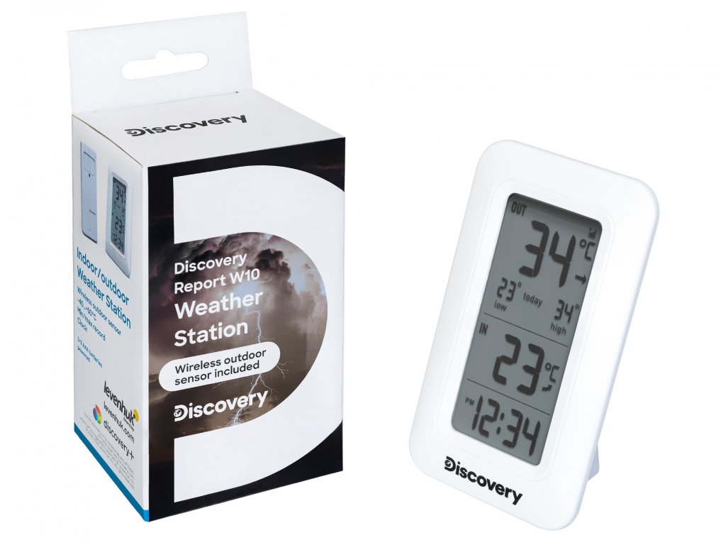 Hlavnou prednosťou stanice je, že je bezdrôtová. Základňa meteostanice a senzor sú napájané batériami a údaje sa prenášajú cez rádiové spojenie. Meteorologická stanica Discovery Report W10 dokonale zapadne do akéhokoľvek interiéru. Základňa meteostanice disponuje  monochromatickou obrazovkou, ktorá je rozdelená do troch blokov. Horný blok zaberá najväčšiu časť obrazovky a zobrazuje nameranú teplotu v exteriéri. Izbová teplota sa zobrazuje v strednom bloku a hodiny nájdete úplne dole na obrazovke. Zobrazované údaje sú jasné a vysoko kontrastné.