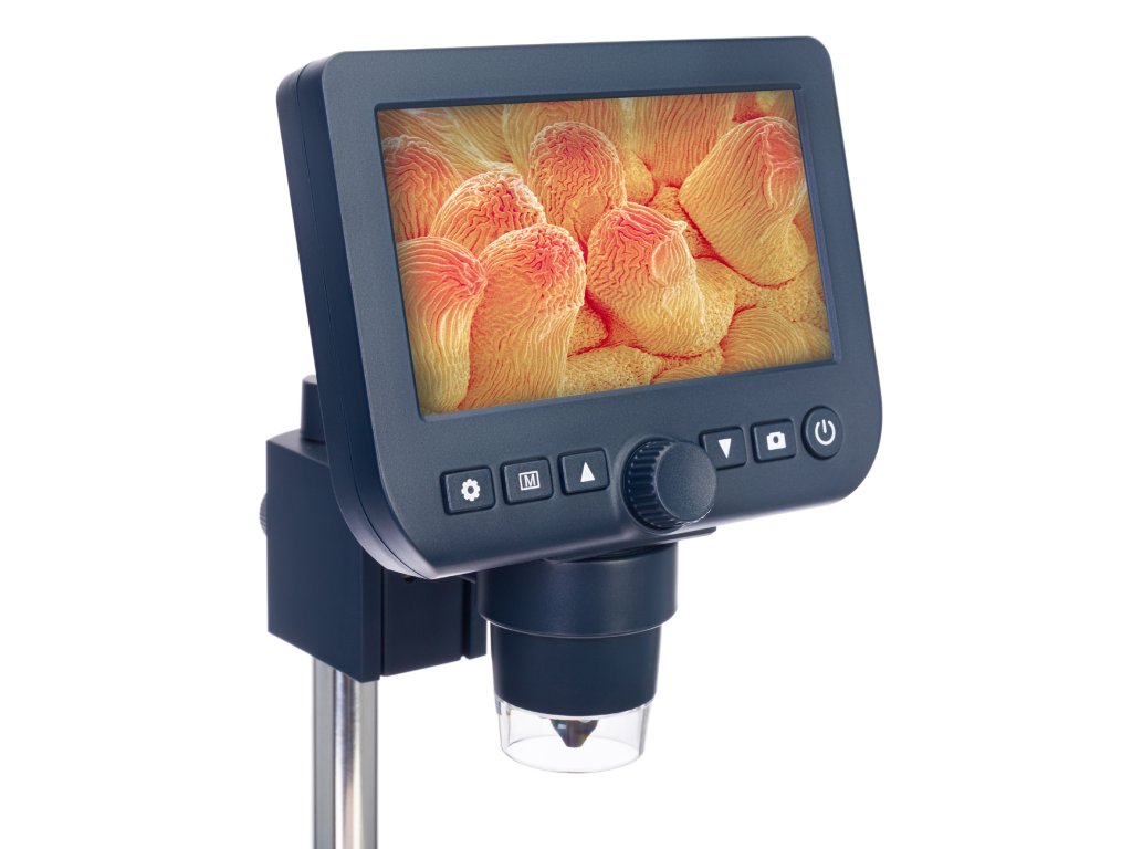 USB mikroskop k aplikovanému výskumu. 4,3″ LCD obrazovka. Zväčšenie: 20–600x. Digitálny USB mikroskop s 0,3 MP fotoaparátom.