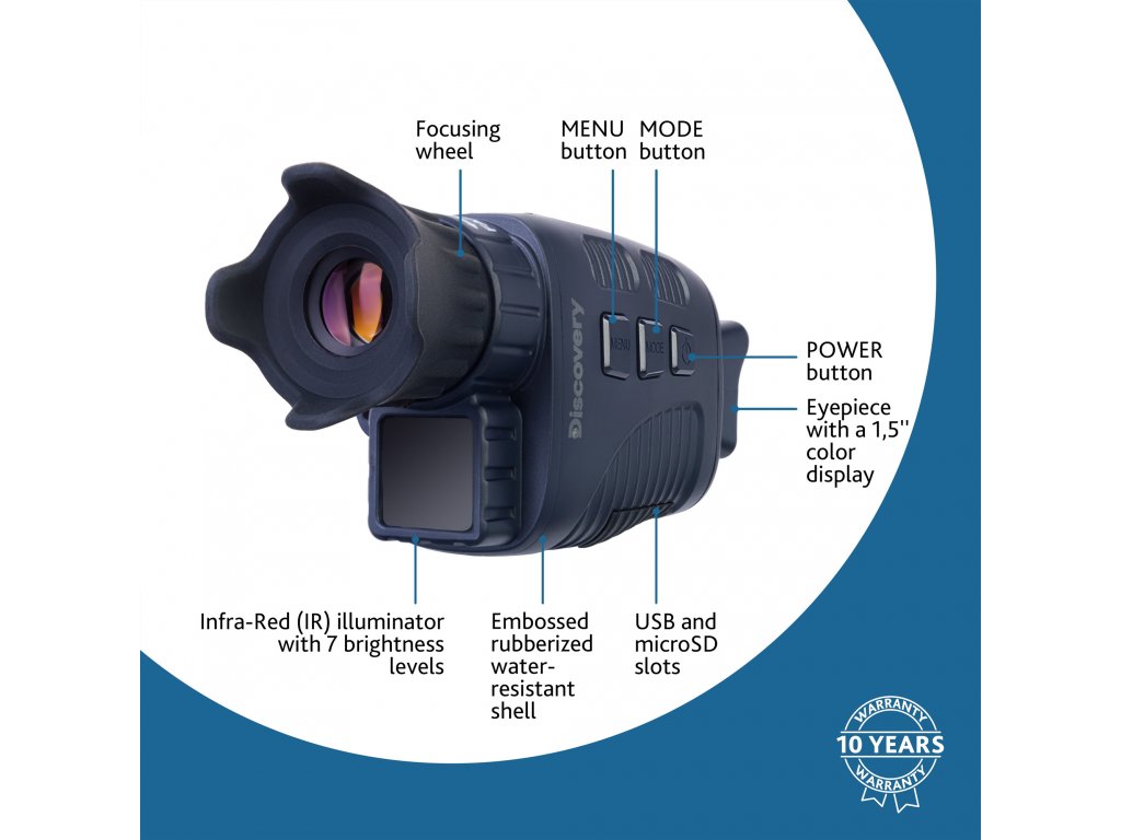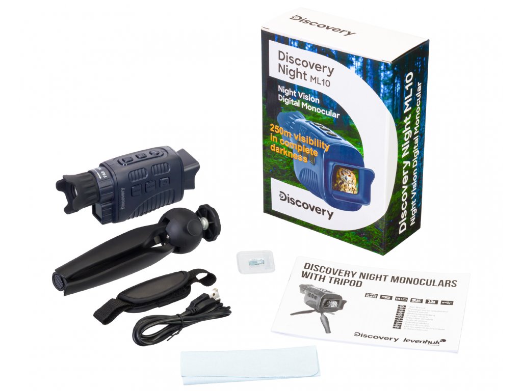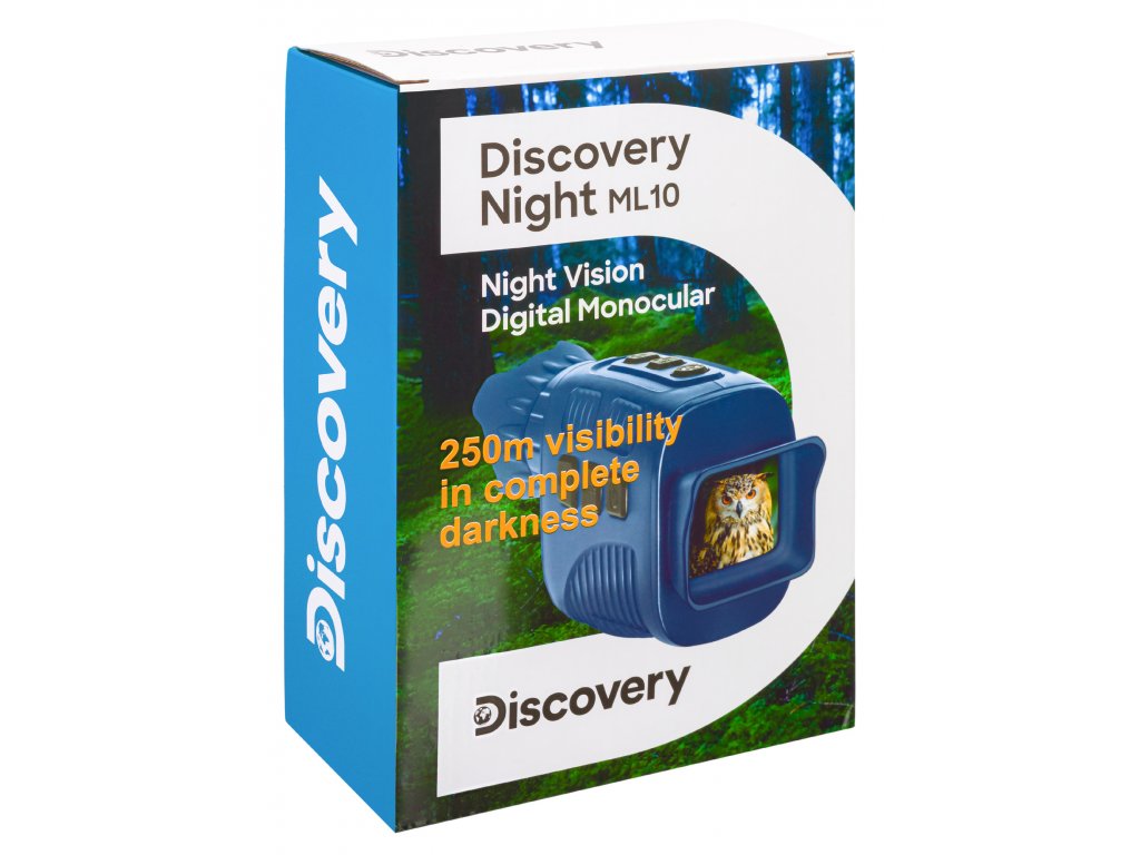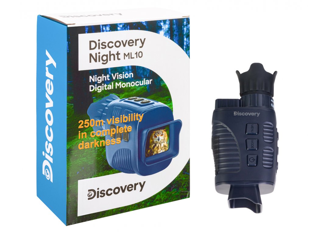 Monokulárny ďalekohľad Discovery Night ML10 je digitálne zariadenie s nočným videním, ktoré je navrhnuté na použitie vo dne aj v noci. Monokulár, nie je ovplyvnený denným svetlom, funguje počas dňa ako klasický monokulárny ďalekohľad. Vybavený je fotoaparátom a videokamerou. Je perfektným spoločníkom napr. pri nočnom love, denných túrach, na kontrolu oblastí a prieskum oblasti a terénu a mnoho iného.
