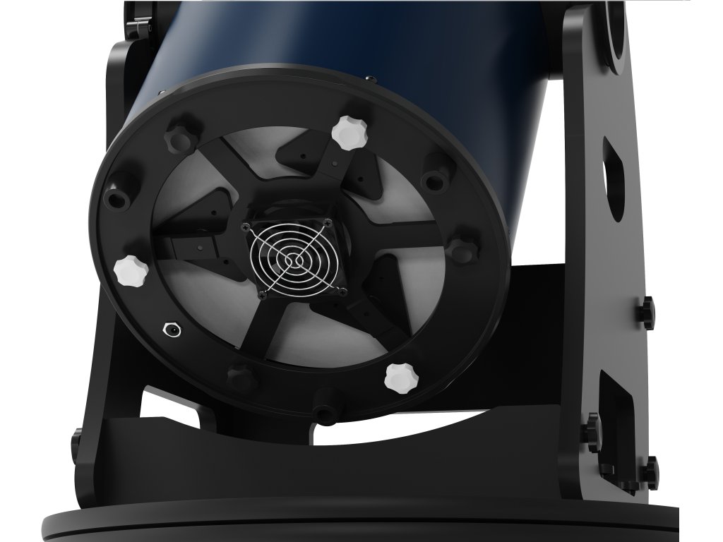 The optical tube assembly (OTA) weighs 36kg. It is mounted on a manually operated Dobsonian mount that is made of sturdy wood and weighs 29kg. This design makes the mount a reliable and stable platform that is capable of withstanding prolonged, intensive use. The package includes essential accessories: 10mm and 25mm Plössl eyepieces (1.25"), an 8x40 finderscope, and a primary mirror cooling fan. The fan is powered by 8 AA batteries (sold separately).