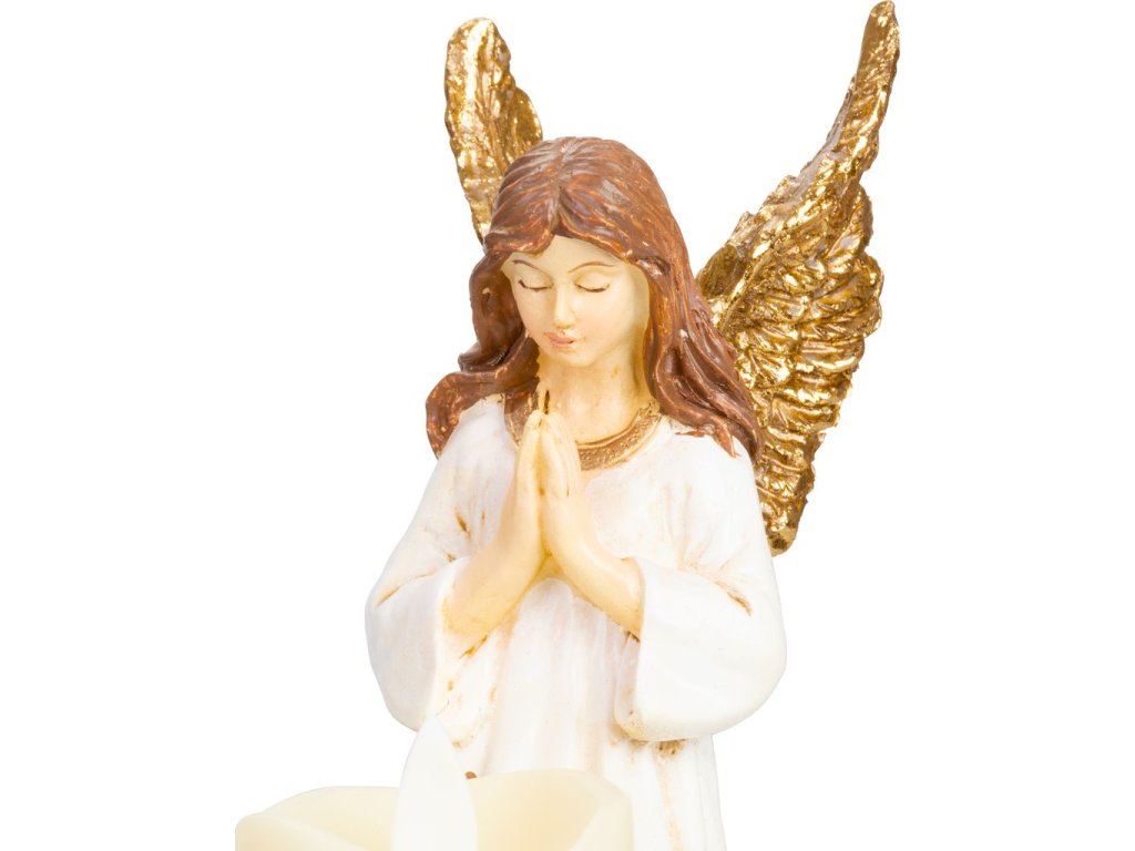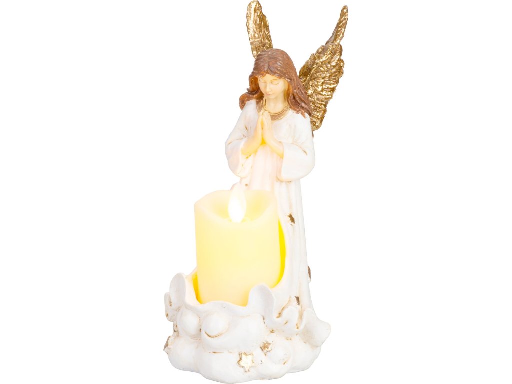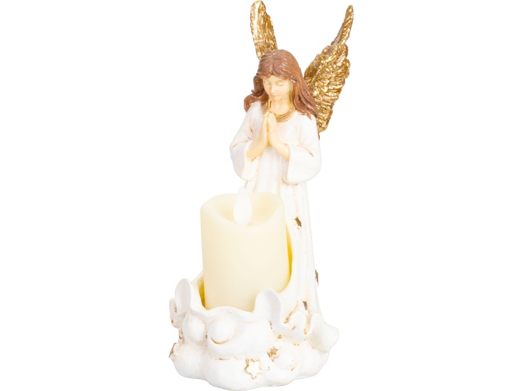 Dekorácia MagicHome, Anjel so sviečkou, LED, polyresin, na hrob, 10,5x14x20 cm