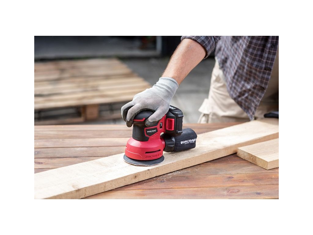 Multifunkčná AKU brúska Worcraft CRS-S20Li je vhodná na suché brúsenie dreva, nábytku, drevených podláh kovov a náterov. Na rozdiel od vibračnej brúsky, excentrická brúska nielen kmitá čiže vibruje, ale aj rotuje. Excentrická brúska má totiž kruhovú brúsnu dosku namiesto obdĺžnikovej či delta. Otáčavý pohyb je ľahko vyosený, a to až o 2,5–3 mm kvôli tomu, aby sa na brúsenom materiáli netvorili kruhové stopy. Brúsenie excentrickou brúskou je vďaka rotácii efektívnejšie, čo je mnohokrát aj laickým okom viditeľné. Prístroj nie je vhodný pre brúsenie za mokra. Jej súčasťou je spínač proti prachu, regulátor otáčok a brúsnu základňu so suchým zipsom. Celé telo je potiahnuté s TPE (termoplastickou gumou) pre pohodlnú obsluhu. Súčasťou balenia je aj vrecko na zachytávanie prachu. Počet brúsnych kmitov je 0 – 12 000 min-1. Priemer brúsneho taniera: 125 mm. Hmotnosť multifunkčnej brúsky je iba 1,2 kg, takže ľahko sa s ňou manipuluje.
