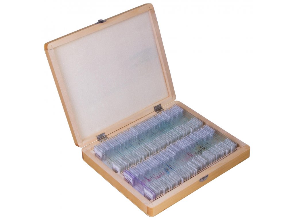 Sada preparátov pripravených k pozorovaniu mikroskopom Bresser, 100 ks v kufriDrevená krabička obsahuje preparáty: