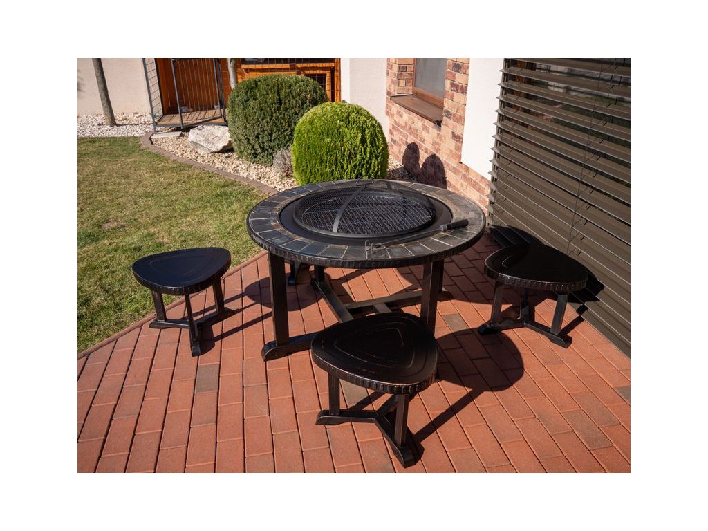 Záhradné ohnisko s grilom + 4 stoličky Strend Pro Grill, 105x75 cm
