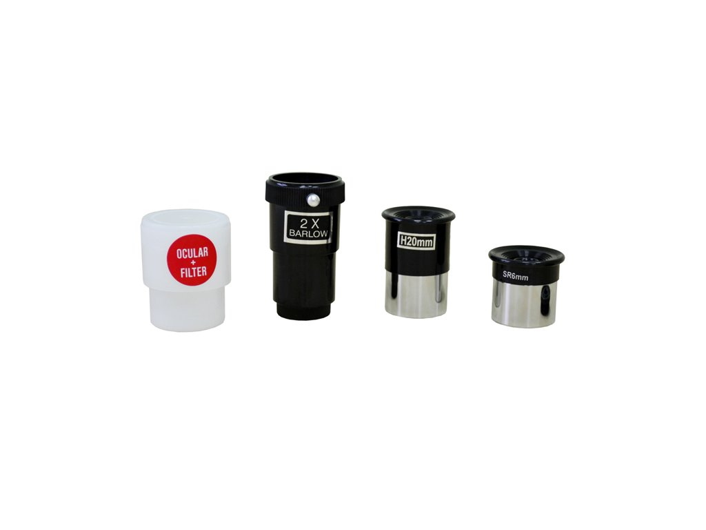 Teleskop Bresser National Geographic Dob 114/500Astronomický teleskop Bresser National Geographic Dob 114/500 je vybavený dvoma okulármi o veľkosti 6 mm a 20 mm. Súčasťou balenia je 2x. Barlowova šošovka. Rozsah zväčšenia v základnej konfigurácii je 25 - 167x. Hľadáčik je vybavený červenou bodkou, ktorá umožňuje ľahko a rýchlo teleskop nasmerovať na ľubovoľný astronomický objekt. Pri skúmaní Mesiaca, použite mesačný filter ktorý je súčasťou balenia. Vďaka tomúto príslušenstvu ktoré znižuje jas Mesiaca, budú detaily jeho reliéfu oveľa kontrastnejšie a čistejšie.