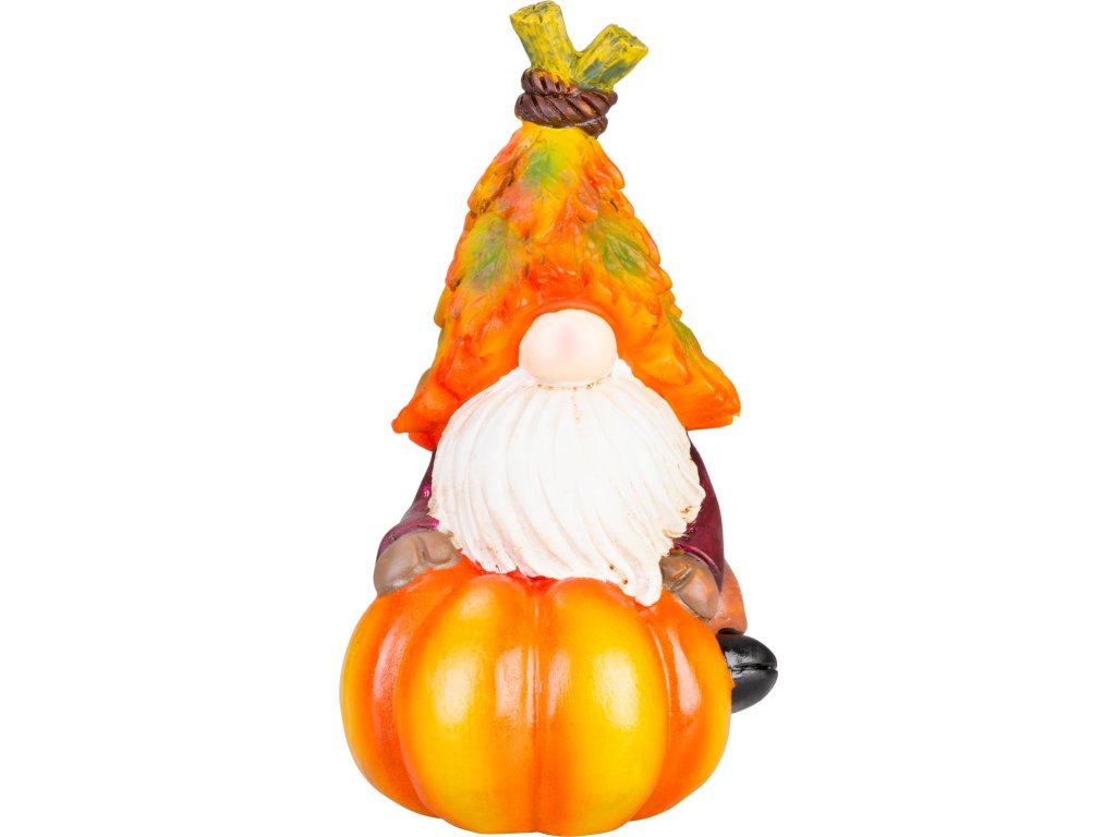 Dekorácia MagicHome Nature, Trpaslík na tekvici, polyresin, 10x11,5x18,5 cm