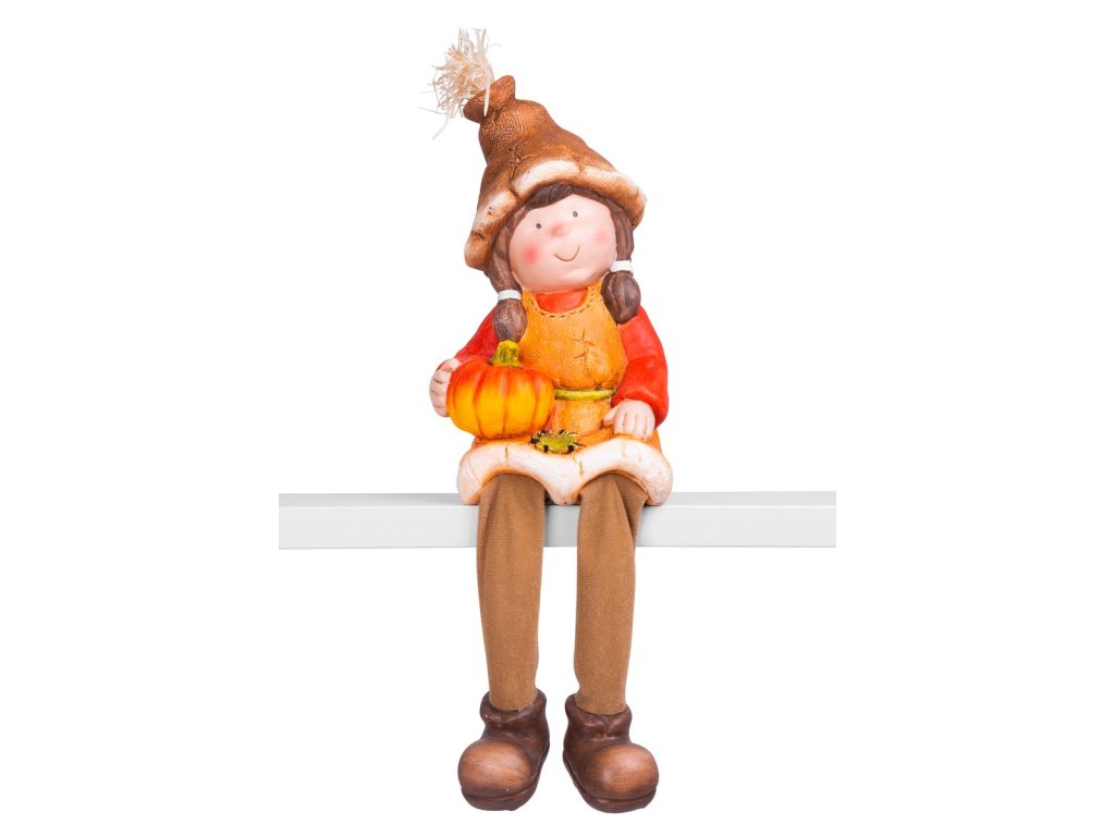 Jesenná dekorácia do záhrady MagicHome Nature, Dievčatko sedí s tekvičkou