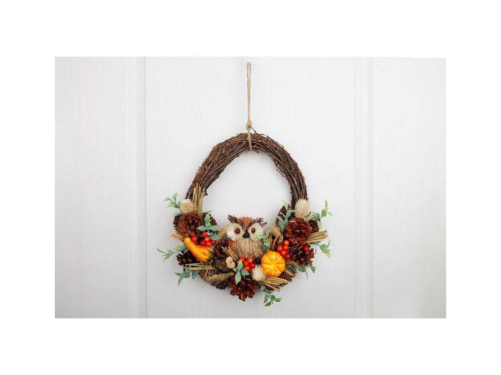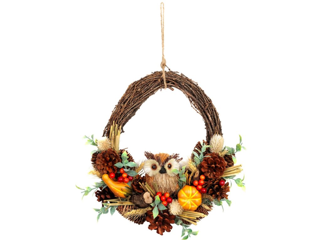 Veniec MagicHome Nature, jesenný, oranžový, so sovou, 35x34x10 cm