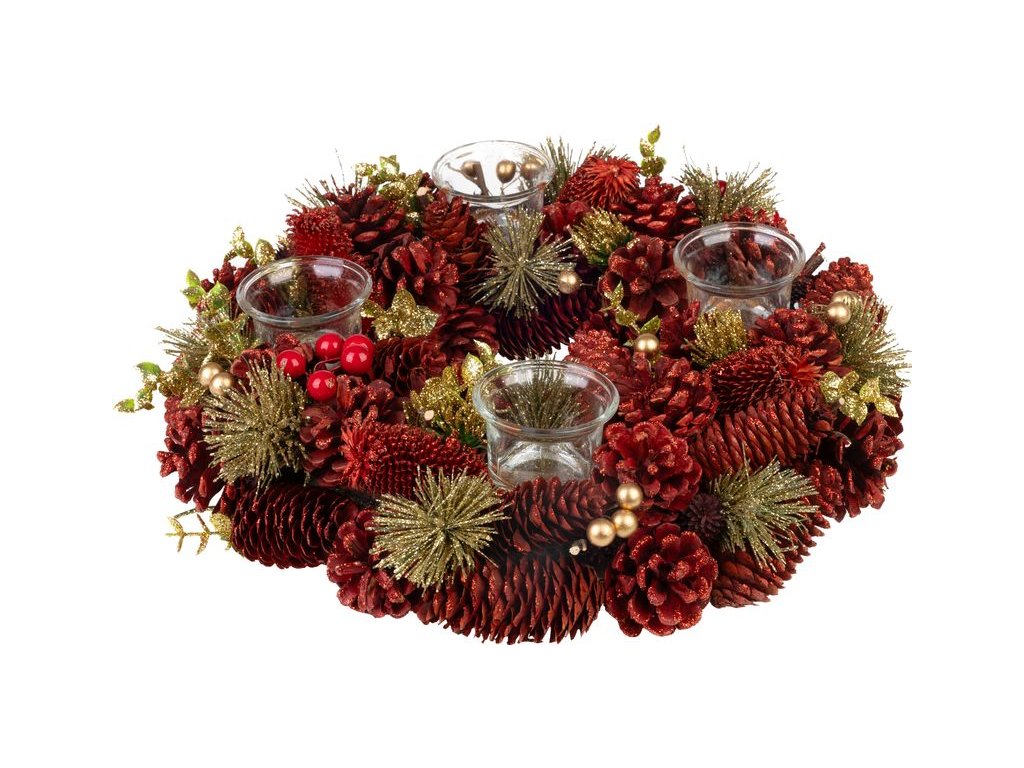 Veniec MagicHome Vianoce, prírodný, červený, adventný, 37x9 cm