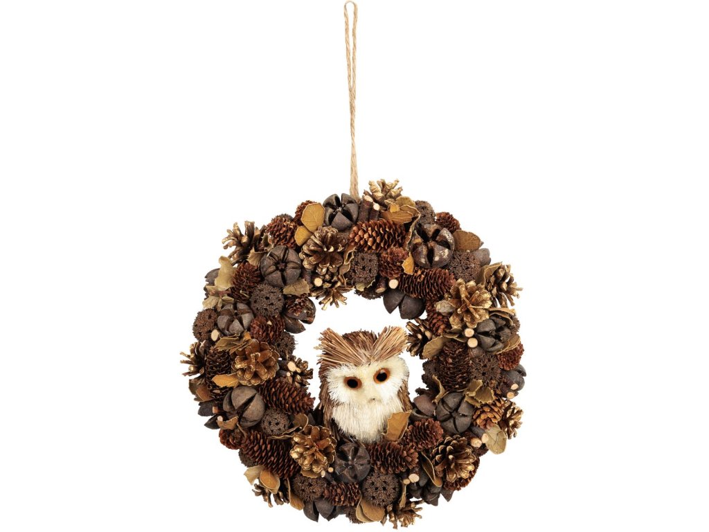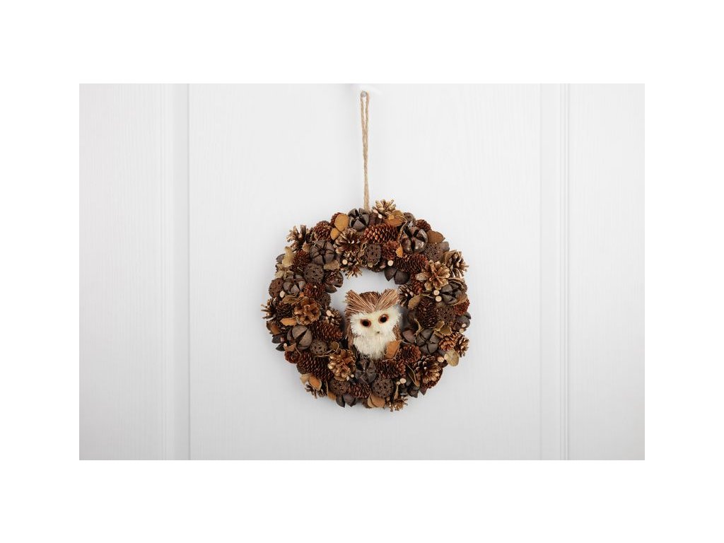 Veniec MagicHome Vianoce, prírodný, závesný, hnedý, so sovou, 30x8 cm